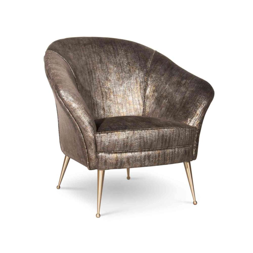 Ten fotel pokazuje swoje klasyczne linie zaczynające się od delikatnych metalowych, zwężających się nóg podtrzymujących idealnie owinięte ramię i ramę.Tapicerka: Dostępna z dowolnej tkaniny z kolekcji KOKET TEXTILES lub COM/COLStopy: Dostępne z mosiądzu, niklowanego i miedzianego mosiądzu o wysokim połysku lub matowym wykończeniuOdbiorca: :