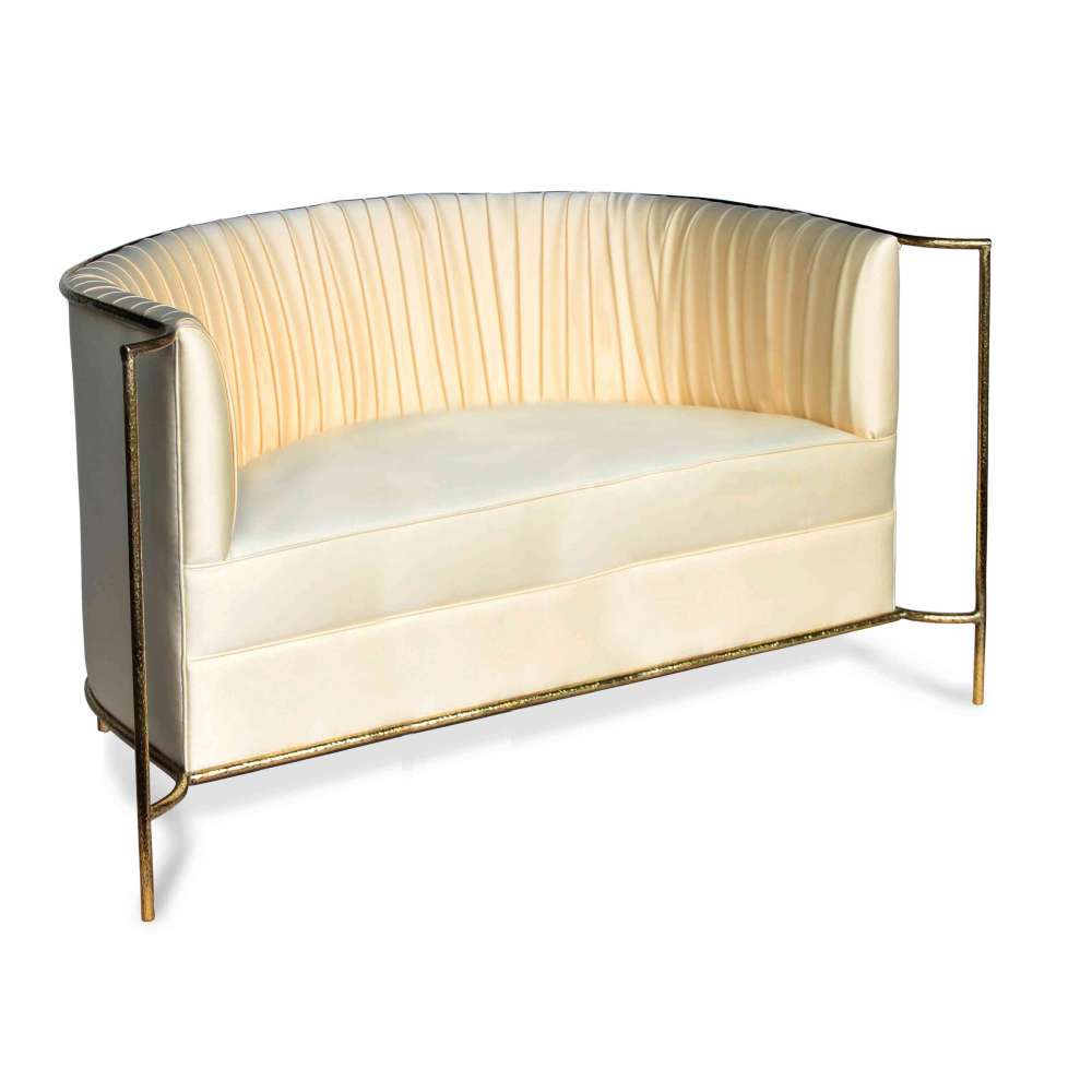 Koket, Pragnienie, Sofy I Fotele, Małe sofy, Mała sofa, Małe sofy w stylu współczesnym, Małe sofy skórzane, Sofa z białego aksamitu; Hammered Matte Gold Sofa, Sofa wenecka, Sofa z białego aksamitu; Krzesło z białego mosiądzu