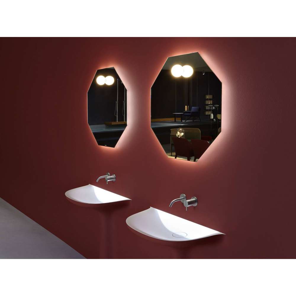Perfekcyjne geometryczne kształty, esencjonalne i niemal zwiewne figury, które zdają się oscylować na ścianie. Sześciokąt z Modulo6 , ośmiokąt z Modulo8 i okrąg Cyrku tworzą kolekcję zdolną do zaspokojenia różnych wymagań estetycznych. Dostępne z oświetleniem led lub bez, lustra te doskonale integrują się zarówno ze współczesnymi ustawieniami, jak i elementami retro lub mieszczańską atmosfer...Odbiorca: :