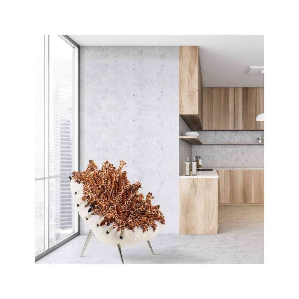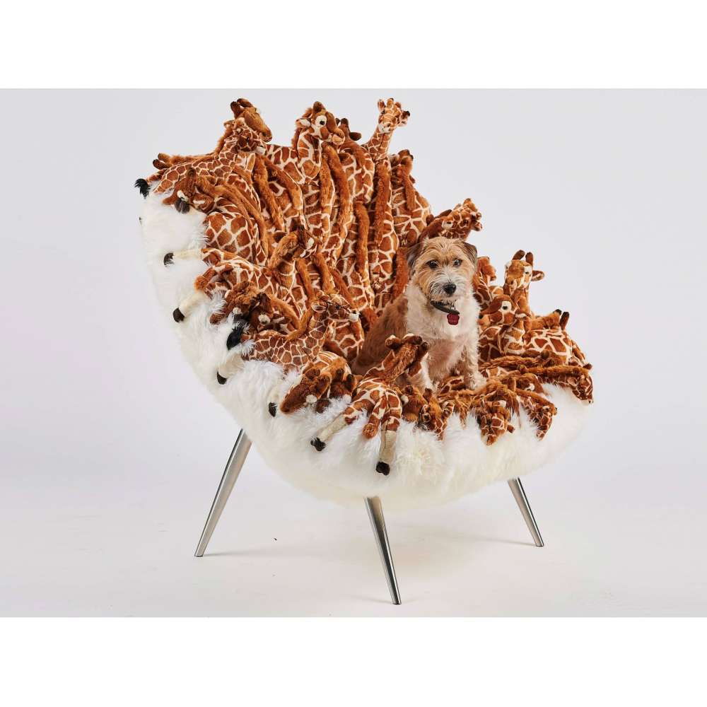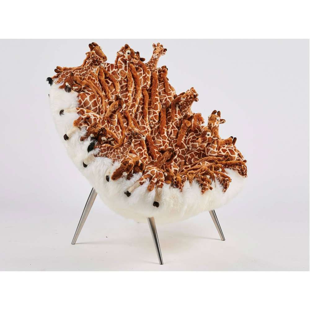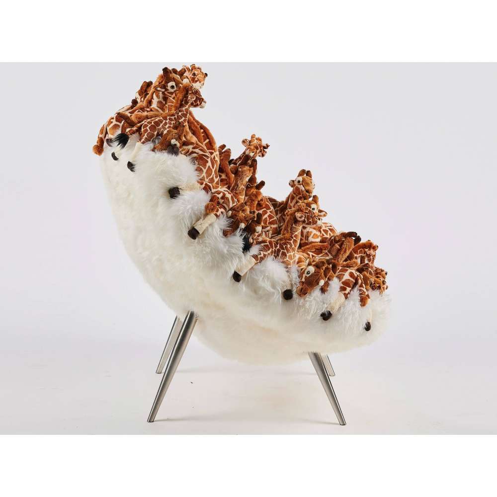 Galila to tapicerowany fotel wykonany ręcznie w Belgii z poliestrowego pluszu, metalową podstawą. Pluszowe zwierzęta zastosowane na każdej kreacji są ręcznie robione w najwyższej jakości i specjalnie przystosowane.