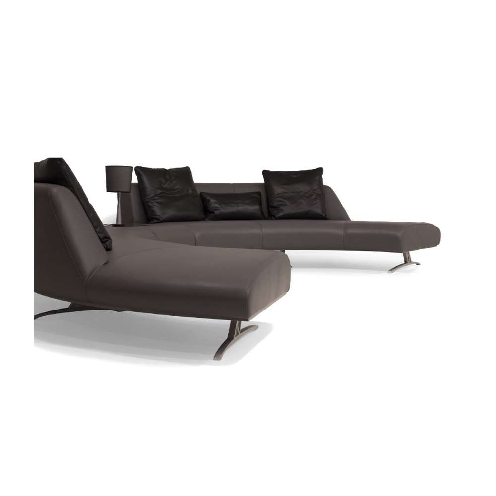 V114 Kompozycja 2 - Narożna segmentowa skórzana tapicerowana sofa "Seta Ardesia". Wstawka w okleinie G23, nóżki metalowe nikiel mat.
