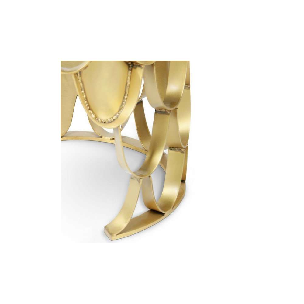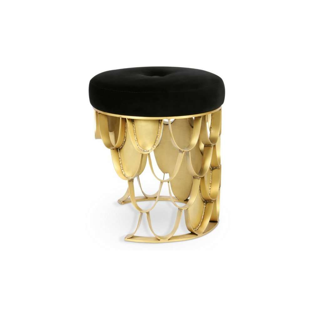 Karp KOI to powracający symbol kultury japońskiej. Jego naturalne mutacje kolorystyczne ujawniają ich zdolność do adaptacji, podobnie jak KOI Stool. Wyposażony w podstawę ze szczotkowanego postarzanego mosiądzu i blat z bawełnianego aksamitu, ten tapicerowany stołek doda wyrafinowanej elegancji każdemu zestawowi w salonie.