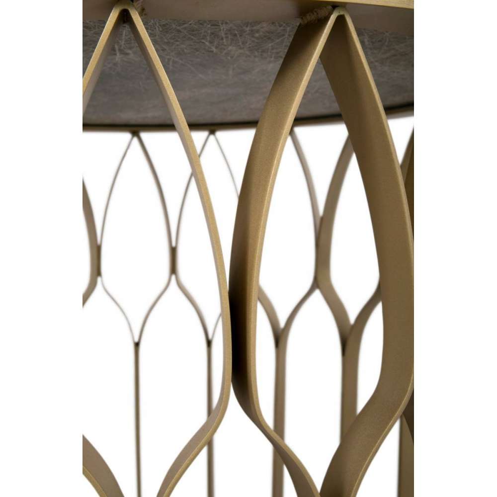 Okrągły mosiężny wysoki stolik boczny z marmurowym blatem