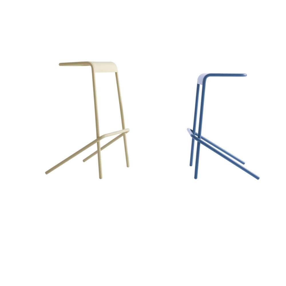 Alodia marki Todd Bracher to stołek do ustawiania w stos dostępny w dwóch wysokościach, wykonany z matowego lakierowanego metalu.