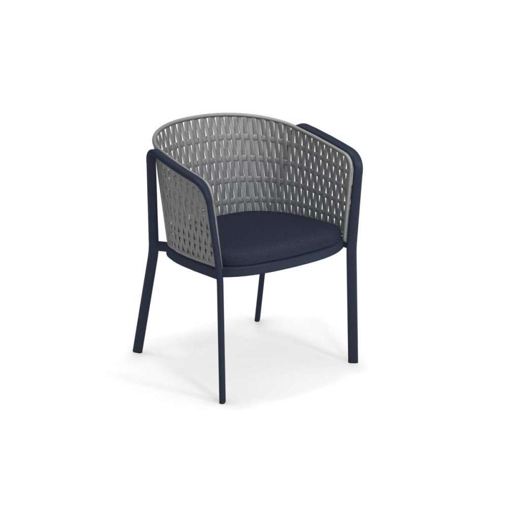 Aby stworzyć produkt designerski o ręcznym wyglądzie zgodnym z wymogami przemysłowymi: to jest wzornictwo przemysłowe. Podejście to skłoniło do zastosowania wielu materiałów na obicie krzesła, które niczym w karuzeli karuzeli przypominają misterną metalową sztalugę, charakterystyczny znak umiejętności technicznych i produkcyjnych EMU. Na jednej ramie możliwe są różne kolory i kombinacje. Techniczna wersja tkaniny (odpowiednia do użytku na zewnątrz) jest wynikiem dogłębnych badań, specjalnego procesu formowania ciśnieniowego, który tworzy kształty zapewniające maksymalny komfort siedziska i oparcia, a także wysokiej jakości właściwości mechaniczne. Wszystkie te cechy składają się na niepowtarzalny charakter tego krzesła. Jeśli chodzi o wersję intervowen, projektant zdecydował się przywołać naturalne i ciepłe odcienie, które wspierają użytkowanie w kilku środowiskach. Konstrukcja jest wykonana z aluminium, ponieważ materiał ten gwarantuje bardziej konkurencyjne wyniki na zewnątrz. Podłokietnik wykonany ze specjalnego aluminiowego profilu obejmuje i przypomina wewnętrzną geometrię ręcznie wykonanego drewna i poprzez trójwymiarowy ruch definiuje elegancki, kultowy znak.