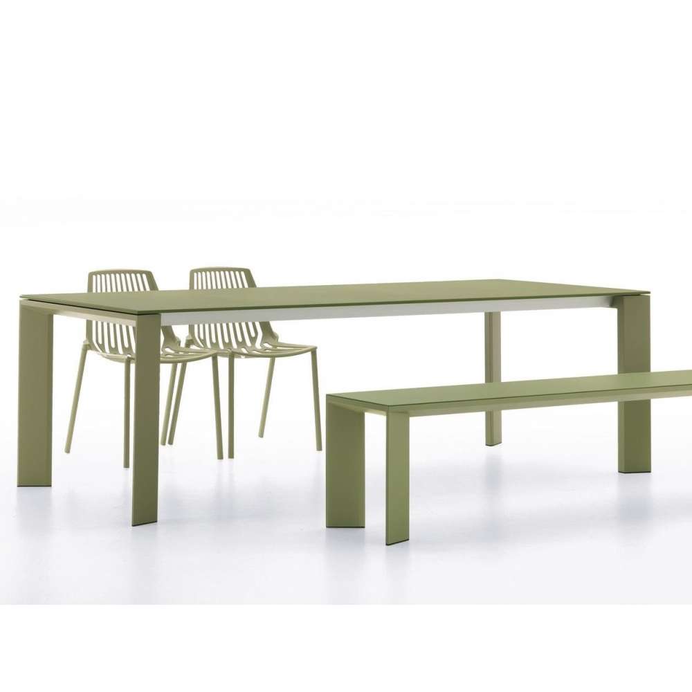 Grande Arche - Prostokątny aluminiowy stół ogrodowy Solidne i kwadratowe kształty pary stołów, które spełnią wszystkie wymagania umeblowania, niezależnie od kontekstu. Kolekcja Grande Arche z malowanego aluminium składa się ze stałego stołu ogrodowego, rozkładanego stołu ogrodowego i ławki. Atrakcyjne kontrasty kolorystyczne można uzyskać w wersji rozkładanej: oprócz standardowej przedłużki (...Odbiorca: :