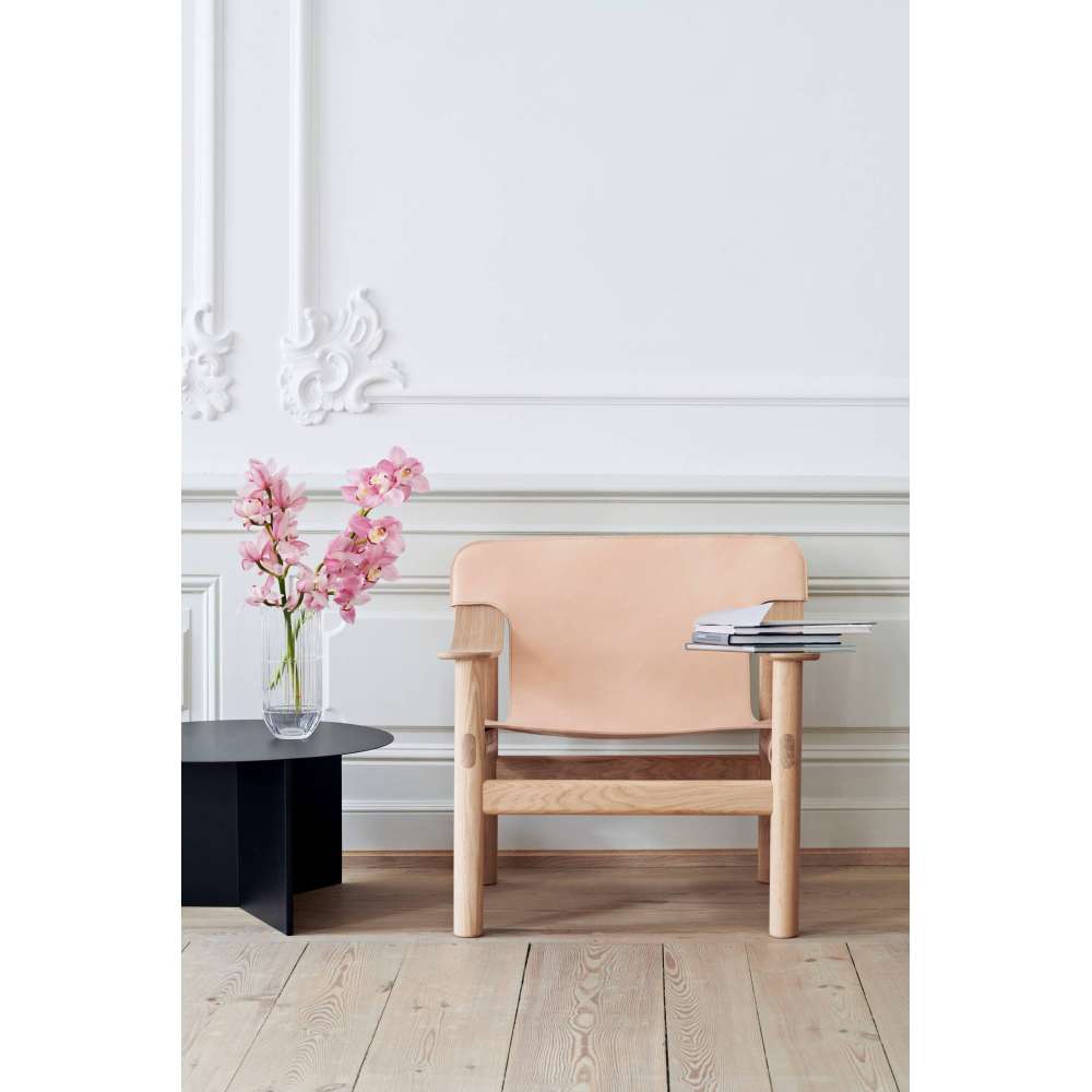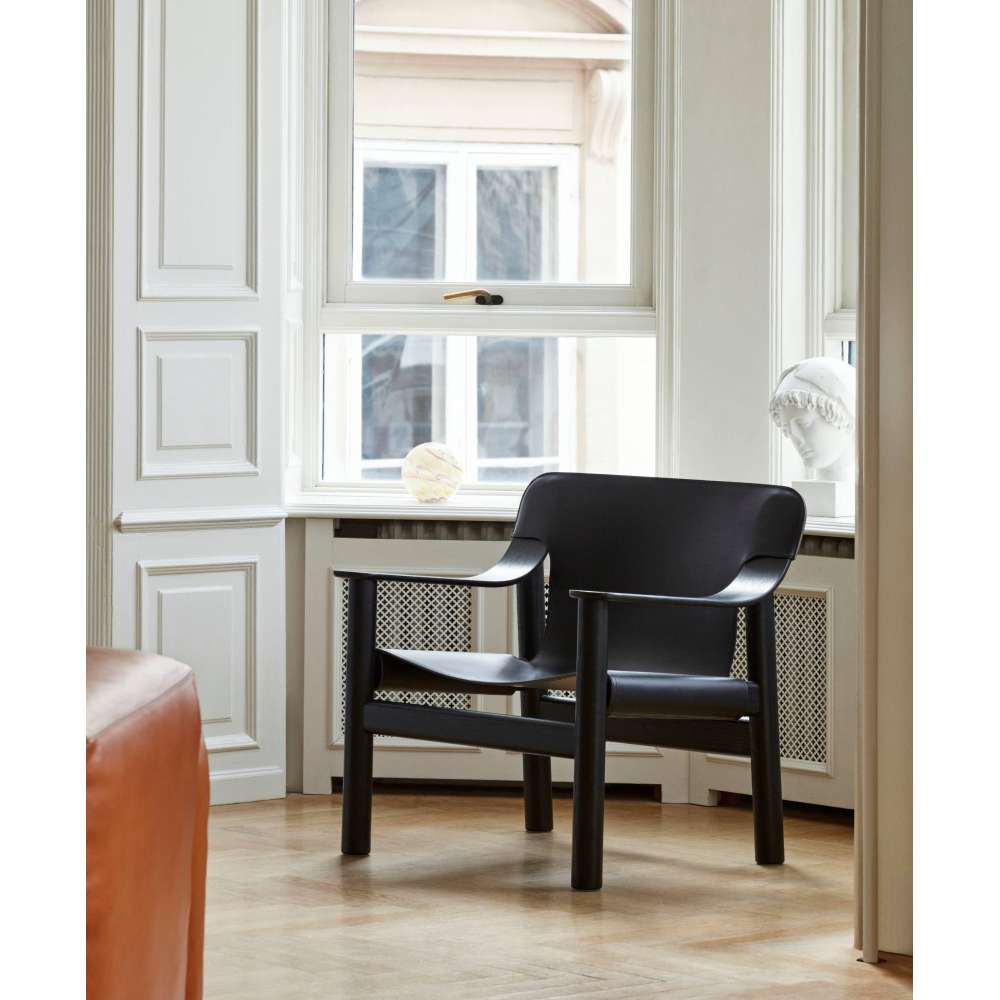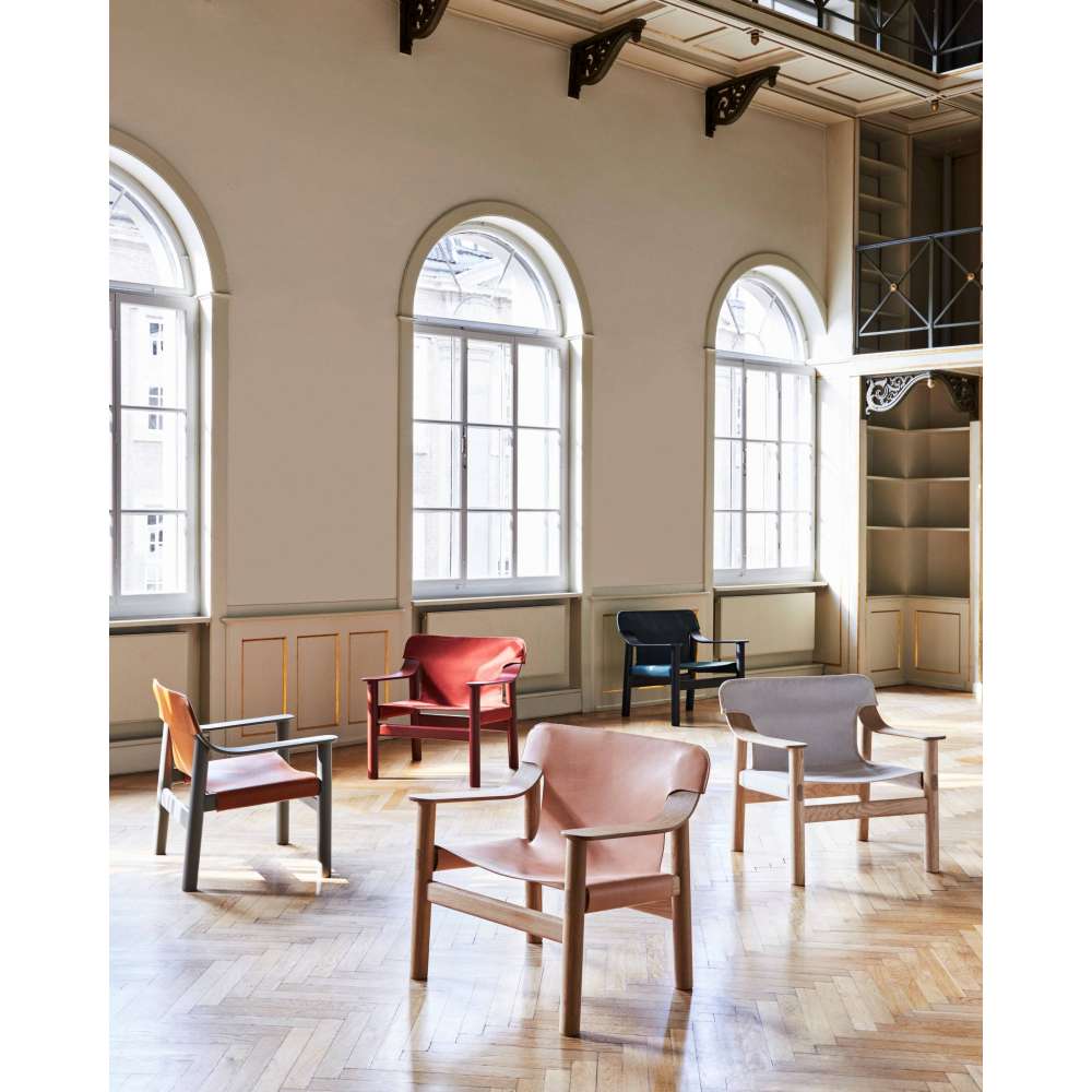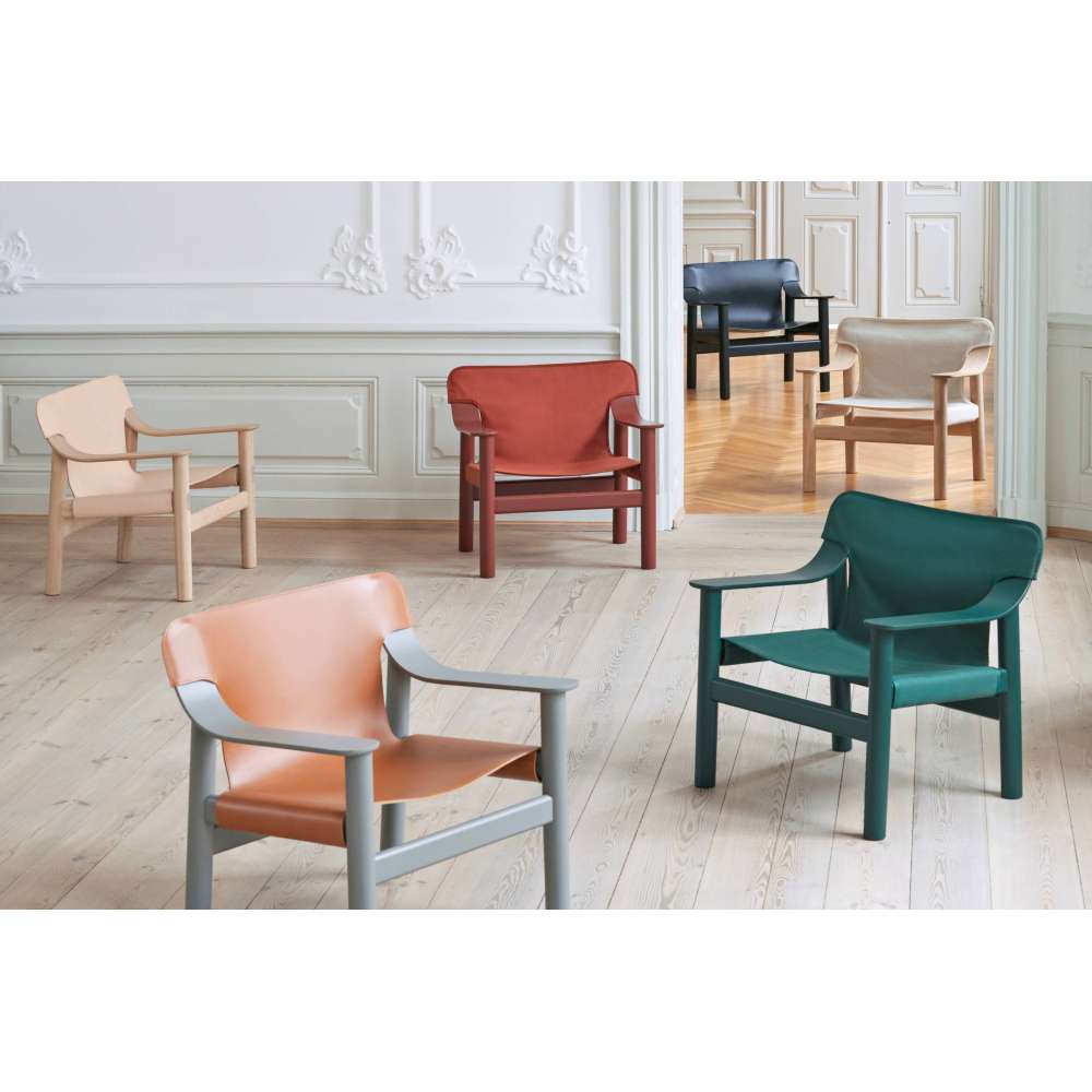Mając na celu stworzenie nowego i przystępnego cenowo klasycznego wzornictwa o nowoczesnym wyglądzie dla przyszłych pokoleń, Bernard z firmy Shane Schneck bada gatunek foteli we współczesnym kontekście. Zestawienie ramy z litego drewna z wizualnie lekkim pokryciem tworzy wyjątkową relację między tymi dwoma komponentami, czego efektem jest wygodne i trwałe krzesło o wyrazistym języku projektowania. Rama jest wykonana z litego dębu lub buku z różnymi wykończeniami, a nasuwana osłona jest dostępna ze skóry lub płótna morskiego o wytrzymałości przemysłowej.