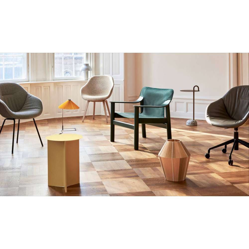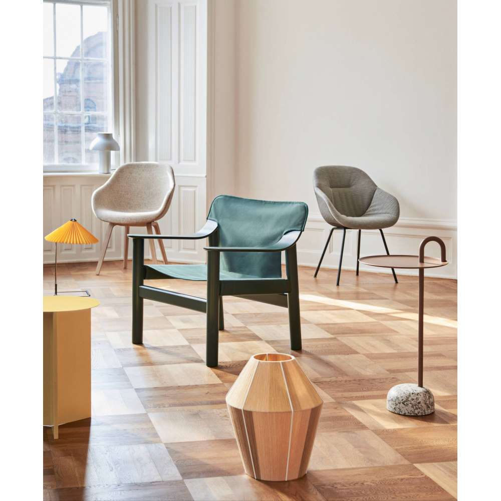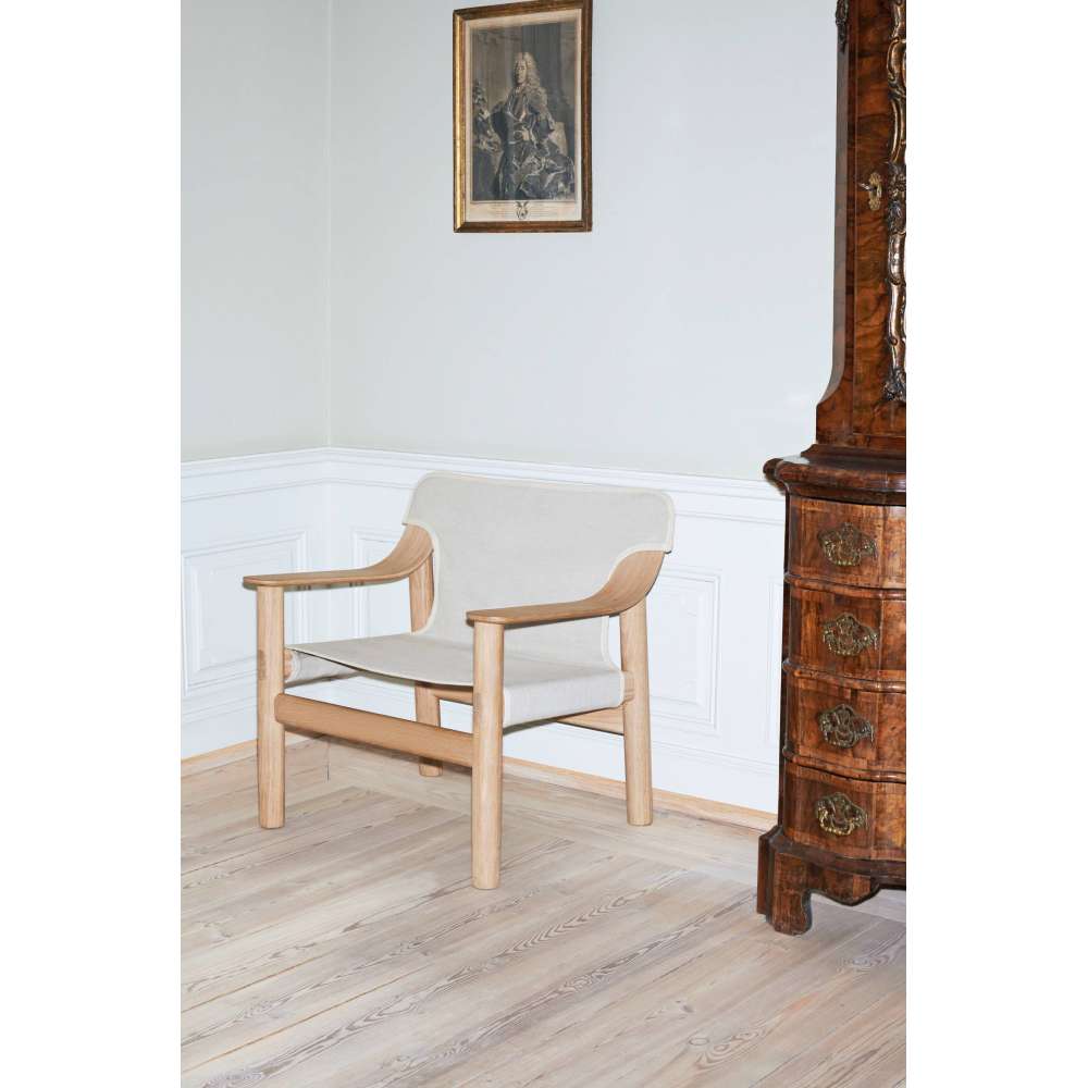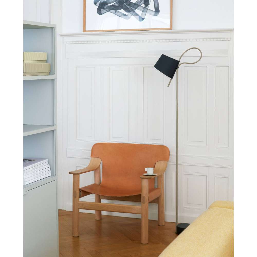 Mając na celu stworzenie nowego i przystępnego cenowo klasycznego wzornictwa o nowoczesnym wyglądzie dla przyszłych pokoleń, Bernard z firmy Shane Schneck bada gatunek foteli we współczesnym kontekście. Zestawienie ramy z litego drewna z wizualnie lekkim pokryciem tworzy wyjątkową relację między tymi dwoma komponentami, czego efektem jest wygodne i trwałe krzesło o wyrazistym języku projektowania. Rama jest wykonana z litego dębu lub buku z różnymi wykończeniami, a nasuwana osłona jest dostępna ze skóry lub płótna morskiego o wytrzymałości przemysłowej.