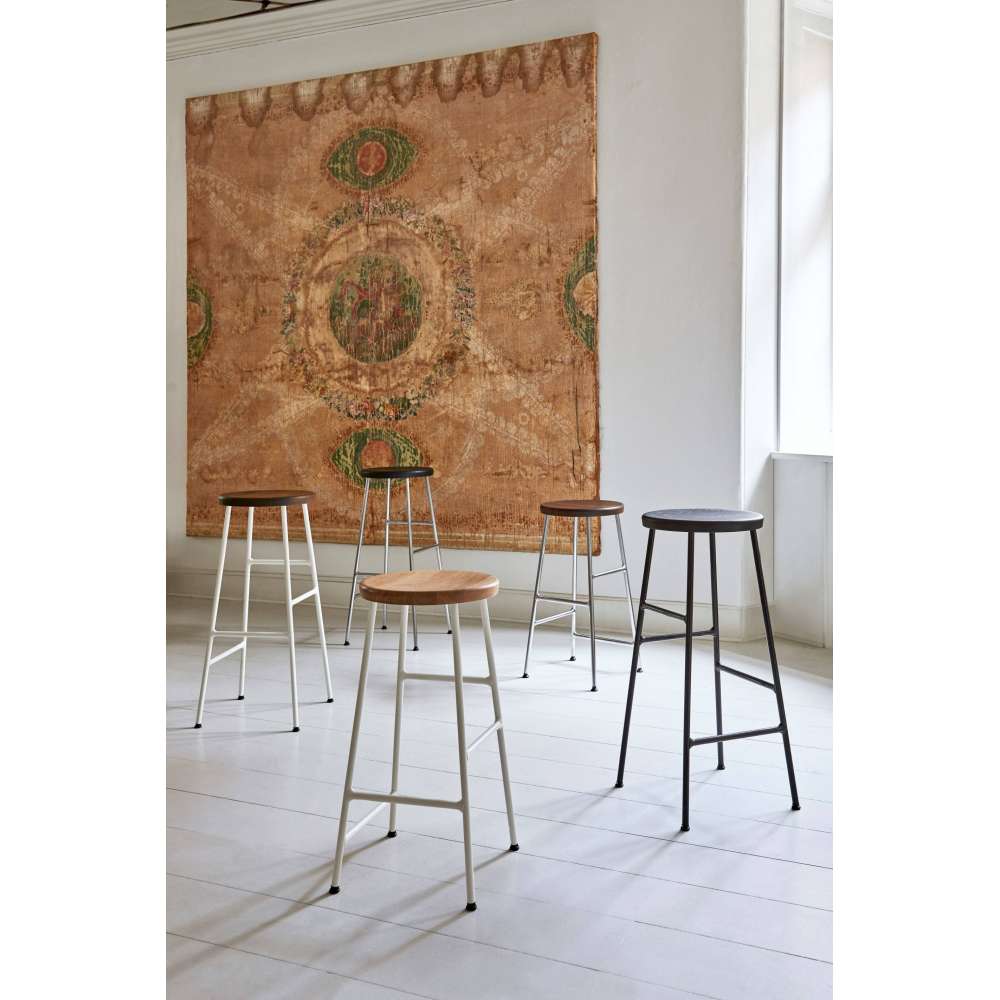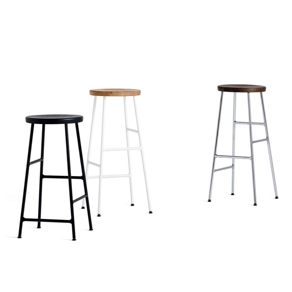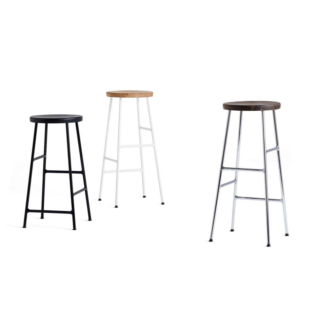 Stołek barowy Cornet firmy Jonas Trampdach to klasyczny stołek barowy wykorzystujący innowacyjną technikę stalowej rury inspirowanej stojakami rowerowymi. Okrągłe siedzisko z litego dębu spoczywa na smukłej stalowej podstawie, tworząc ciekawą równowagę proporcji i profili. Stołki są dostępne w dwóch różnych wysokościach, z możliwością wyboru wykończenia drewnianego siedziska oraz chromowanych lub malowanych proszkowo kolorów nóg. Stołki nadają się do barów, wysp i blatów w wielu miejscach prywatnych i publicznych.