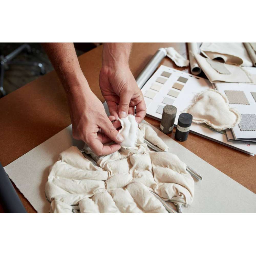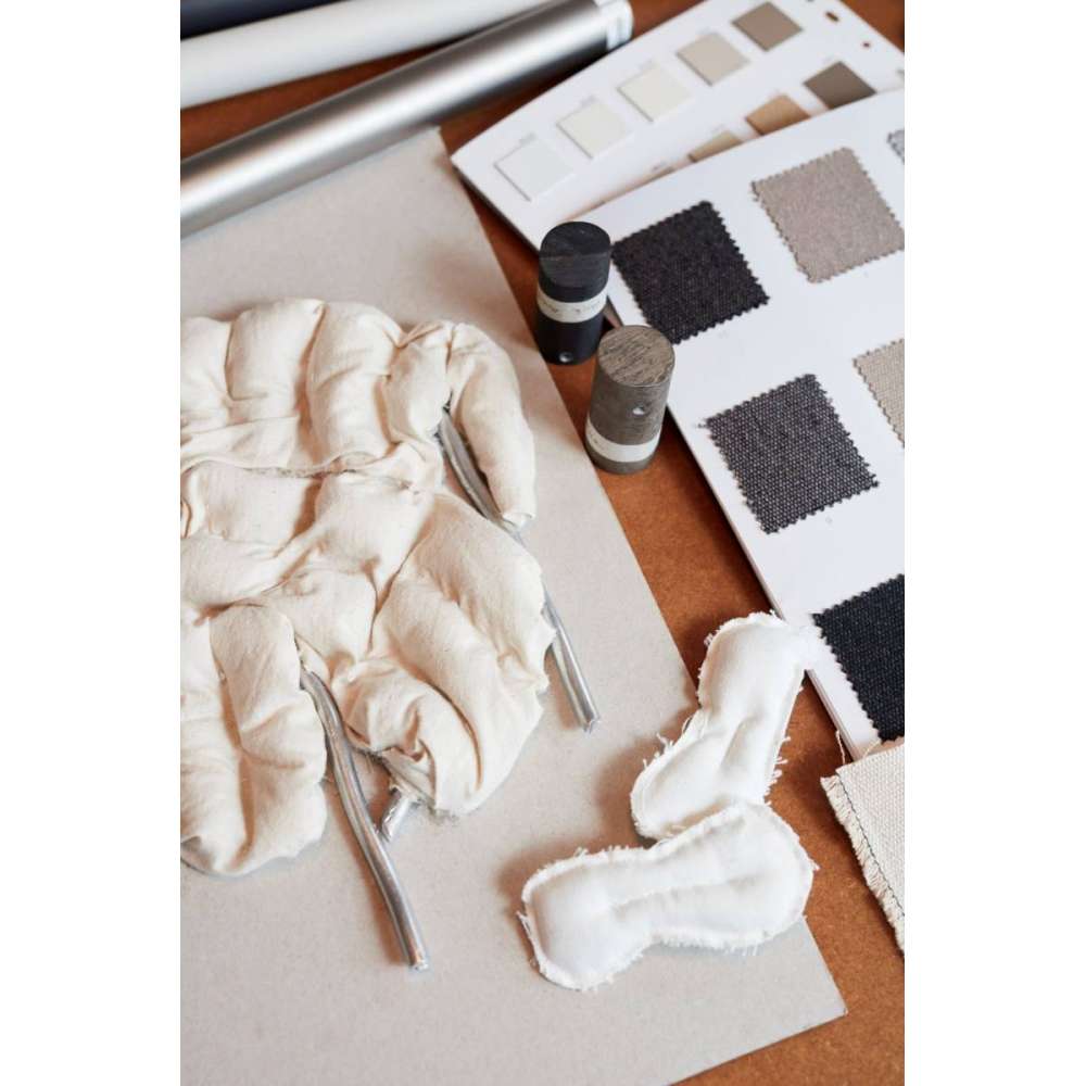 „Ideą kolekcji Puffy Seating jest podkreślenie dwóch prawie sprzecznych pomysłów, które występują w meblach”, mówi Toogood o projekcie , „Po pierwsze, stabilność i wytrzymałość, podkreślone przez pozostawienie na wystawie ramy ze stali nierdzewnej; a po drugie, komfort i pewność, w postaci puchatej tapicerki. Powstałe kawałki mają niezawodną trwałość w połączeniu z otaczającym ciepłem znanej kołdry”.
