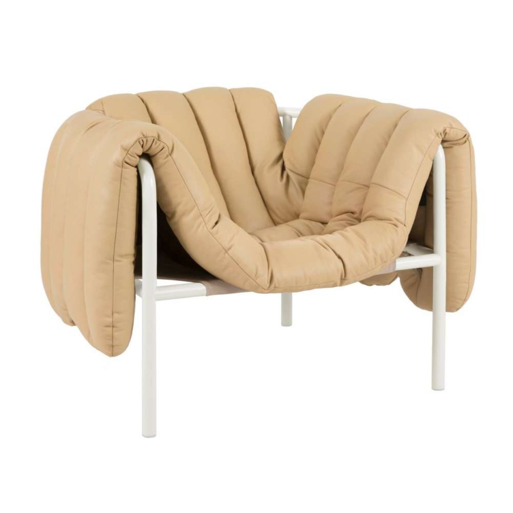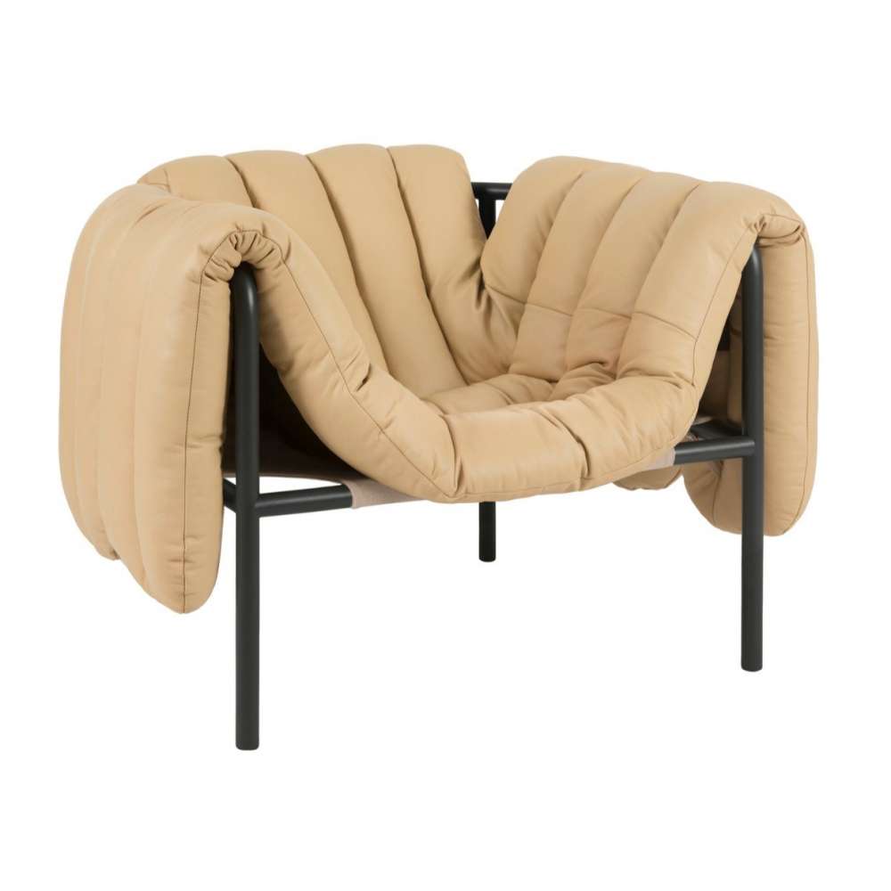 Puffy to fotel o konstrukcji ze stali nierdzewnej i skórzanej tapicerce.