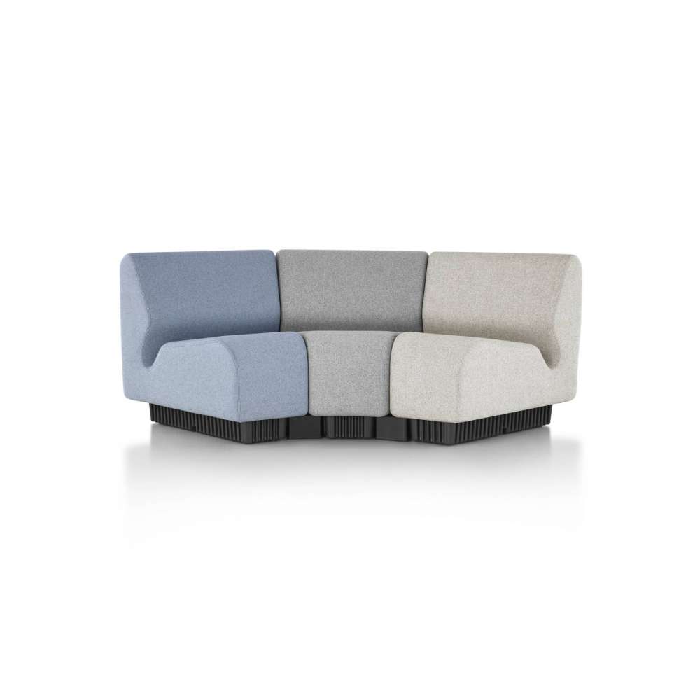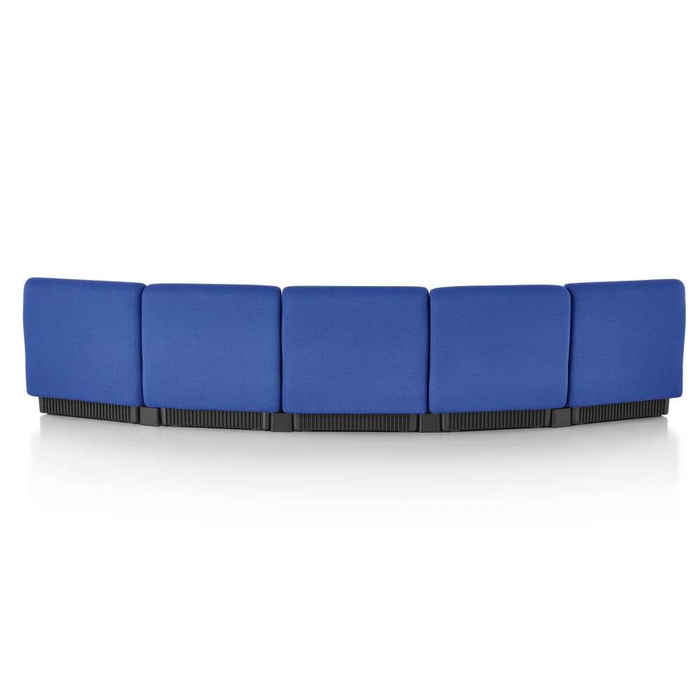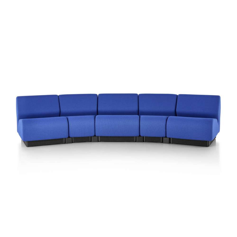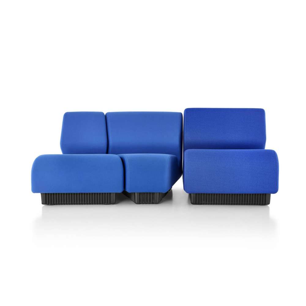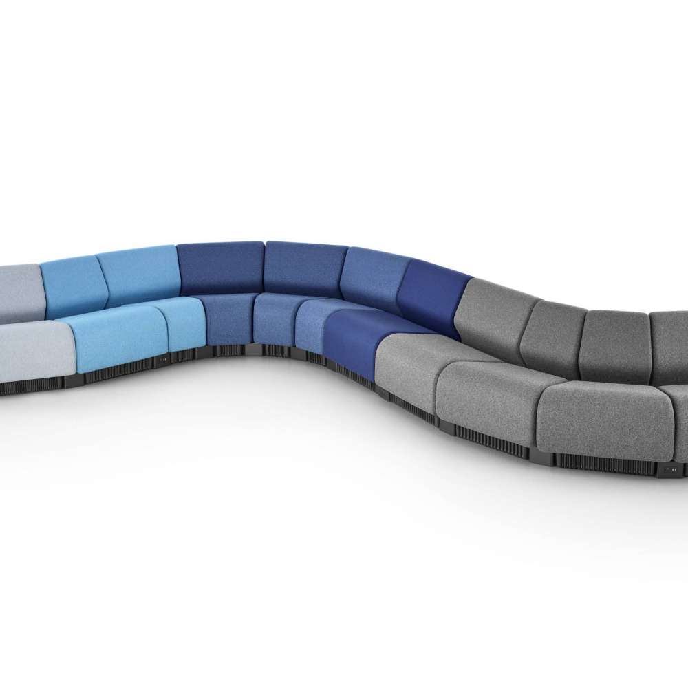 Pięć prostych jednostek, każda o uformowanym, rzeźbionym kształcie, który oferuje wsparcie o miękkim wyglądzie, pozwala systemowi przybierać wielorakie formy. Głębokie kieszenie z tyłu umożliwiają cyrkulację powietrza wokół osoby siedzącej i ułatwiają czyszczenie. Dostępny w różnych tkaninach, każdy mebel ma w pełni tapicerowany przód, tył i boki, dzięki czemu może służyć jako siedzisko końcowe, wewnętrzne lub jednoosobowe, niezależnie od aranżacji. Jednostki łączą się ze sobą bezpiecznie za pomocą prostych złączy i odblokowują w celu szybkiej zmiany.