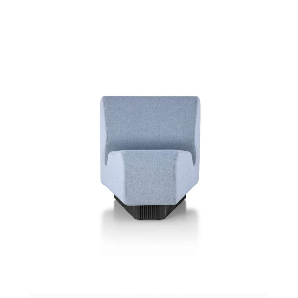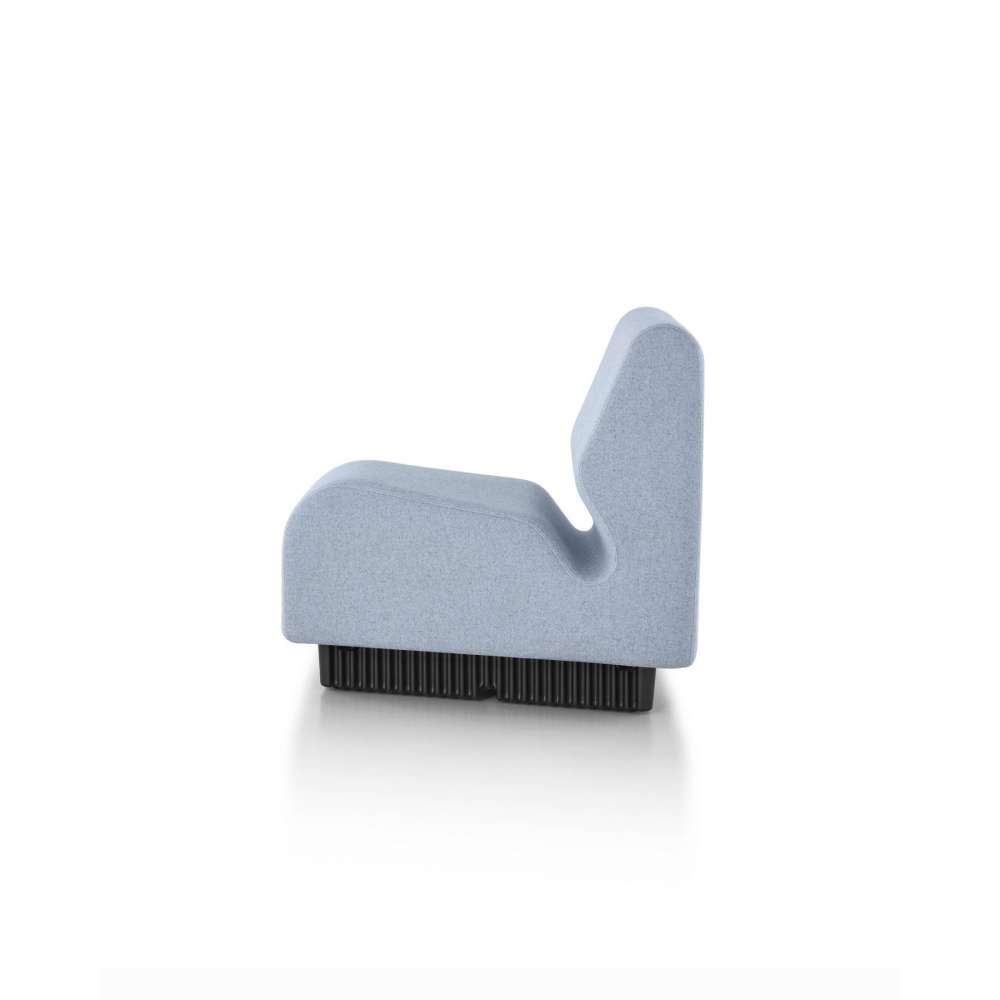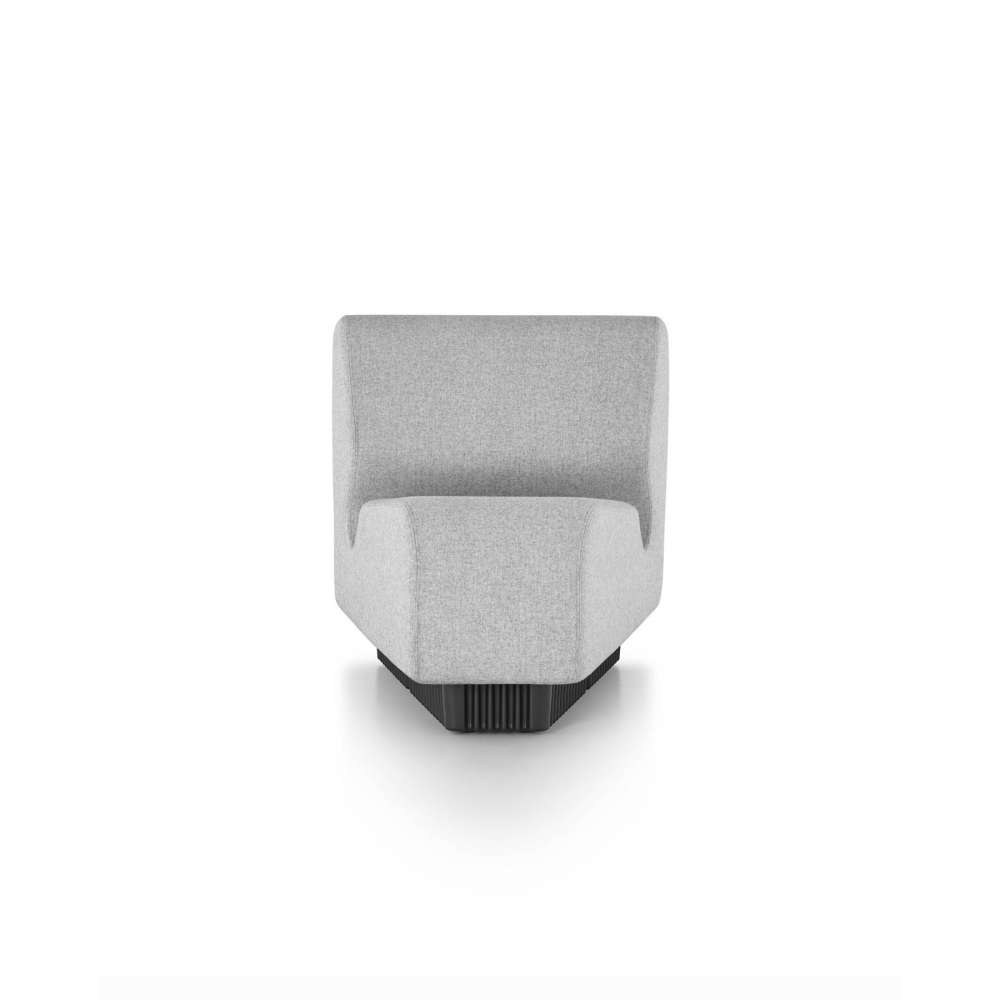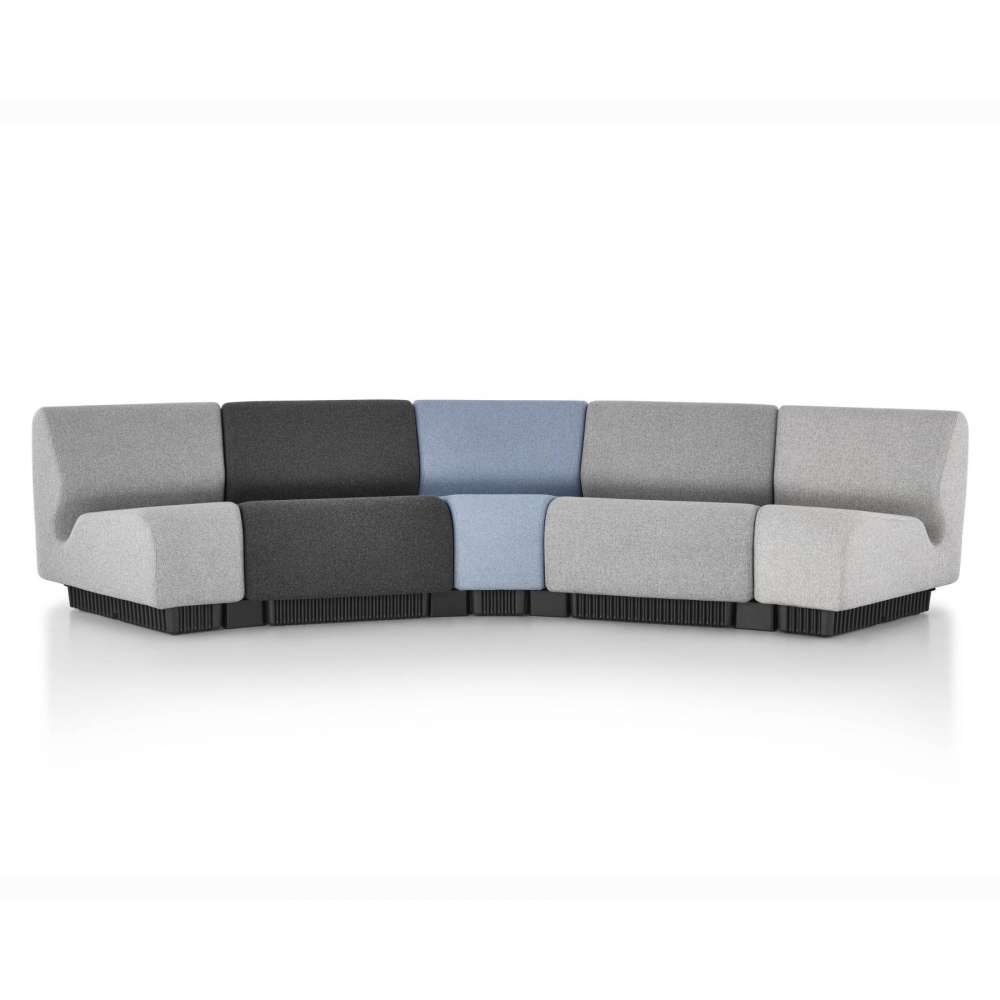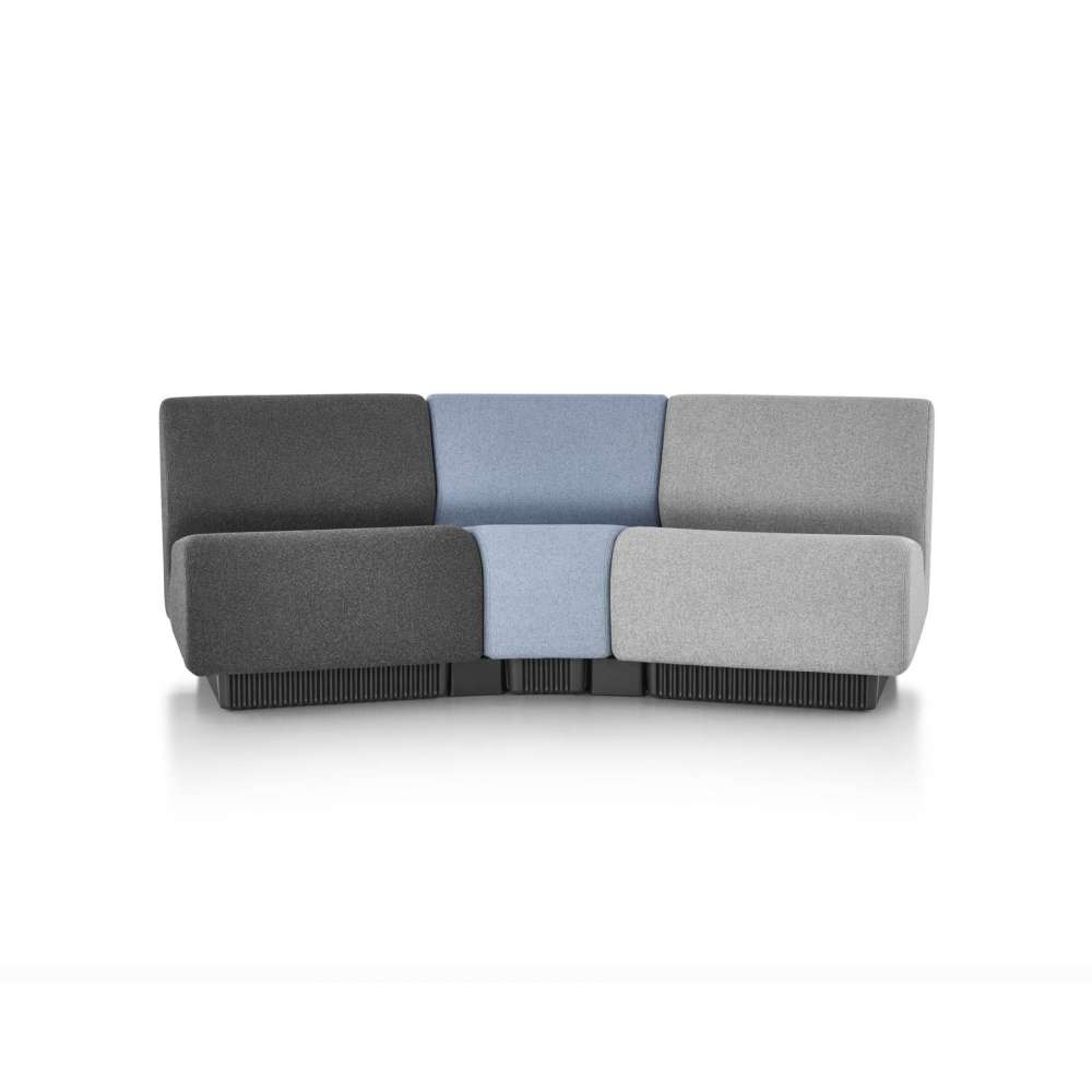 Pięć prostych jednostek, każda o uformowanym, rzeźbionym kształcie, który oferuje wsparcie o miękkim wyglądzie, pozwala systemowi przybierać wielorakie formy. Głębokie kieszenie z tyłu umożliwiają cyrkulację powietrza wokół osoby siedzącej i ułatwiają czyszczenie. Dostępny w różnych tkaninach, każdy mebel ma w pełni tapicerowany przód, tył i boki, dzięki czemu może służyć jako siedzisko końcowe, wewnętrzne lub jednoosobowe, niezależnie od aranżacji. Jednostki łączą się ze sobą bezpiecznie za pomocą prostych złączy i odblokowują w celu szybkiej zmiany.