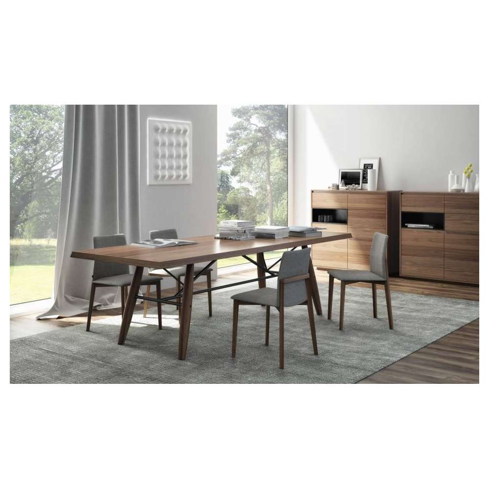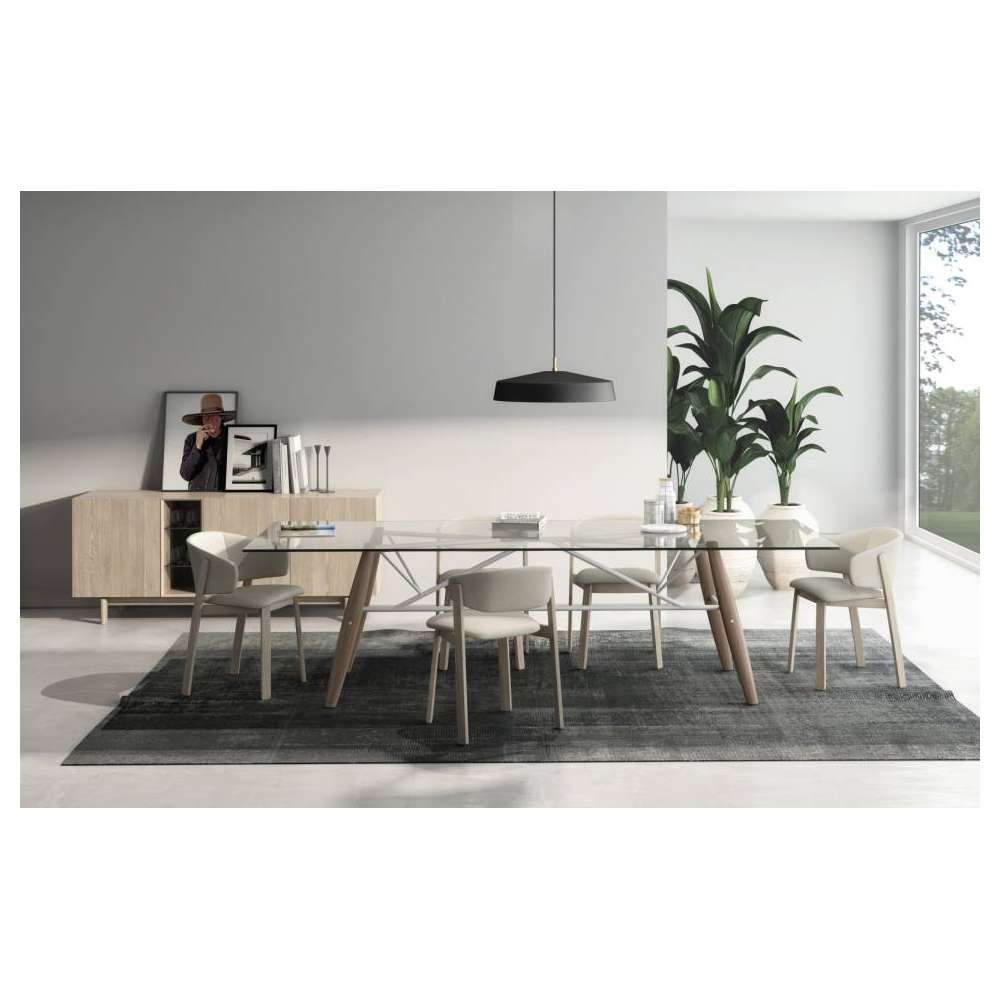 Ten uniwersalny stół z linii UP Dining to współczesny zestaw szkła, drewna i metalu. W przeciwieństwie do większości stołów do jadalni Connection ma podstawę o geometrycznej strukturze, która zasługuje na wyeksponowanie. Stalowa konstrukcja rurowa podtrzymująca stół i łącząca cztery nogi pokryta jest lakierem mikroteksturowym dostępnym w 11 kolorach. Nogi wykonane są z litego białego dębu lub orzecha i oferowane są w różnych półprzezroczystych kolorach. Cała podstawa mierzy 62 lub 80 cali, w zależności od wybranego blatu.