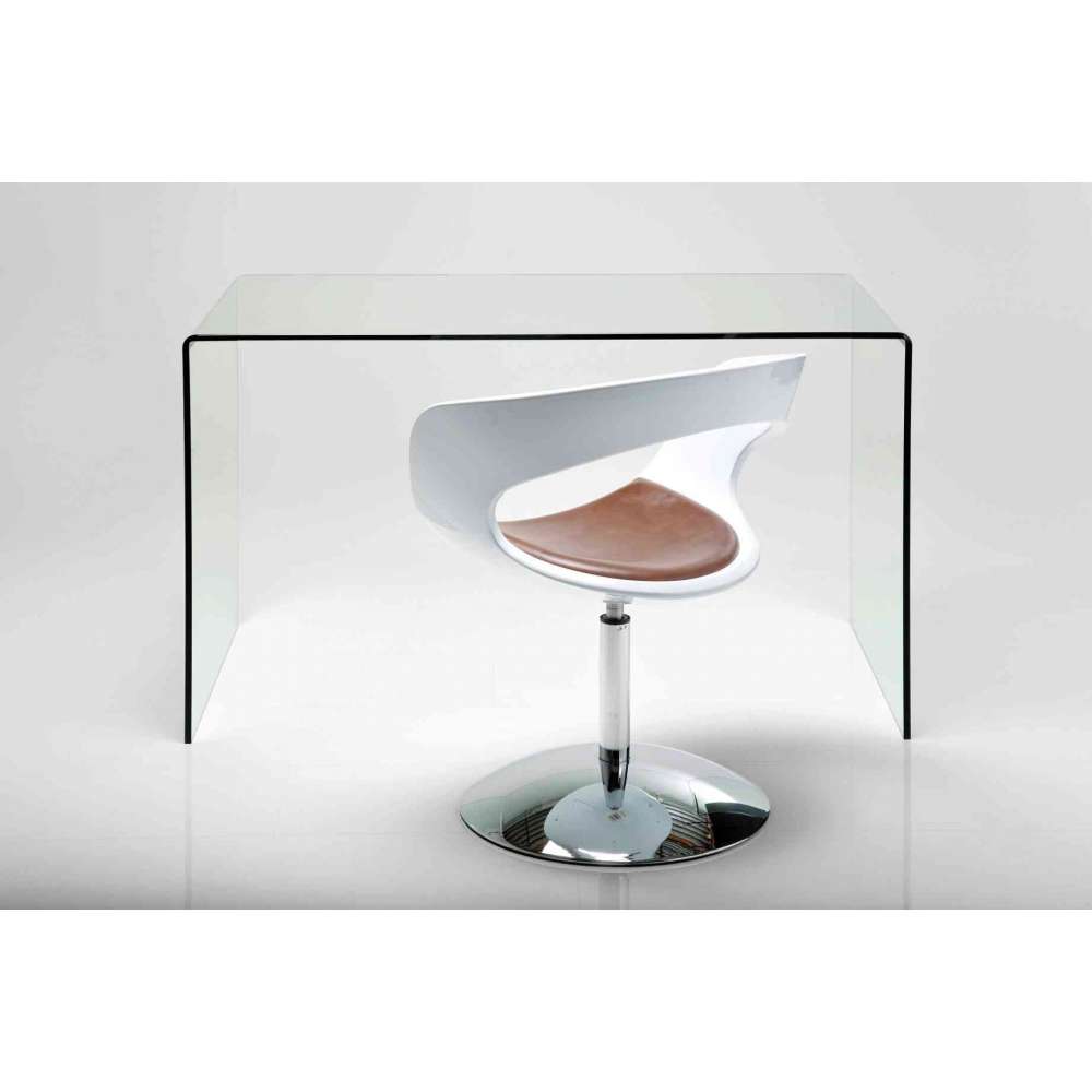 Szklane biurko w stylu retro - Biurko Clear Club robi mocne wrażenie dzięki lekkiej i przewiewnej stylistyce, jaką tworzy szkło o grubości 12 mm. Zaokrąglone krawędzie nadają niepowtarzalnego stylu retro, mimo że ogólne wrażenie, jakie robi biurko, jest bardzo nowoczesne. Seria Club oferuje styl retro dla trendsetterów z myślą o inteligentnym designie. Ta seria przyjmuje organiczne formy i prezentuje je w wirtuozowskim stylu w futurystycznym idiomie formalnym.