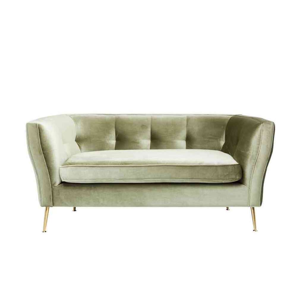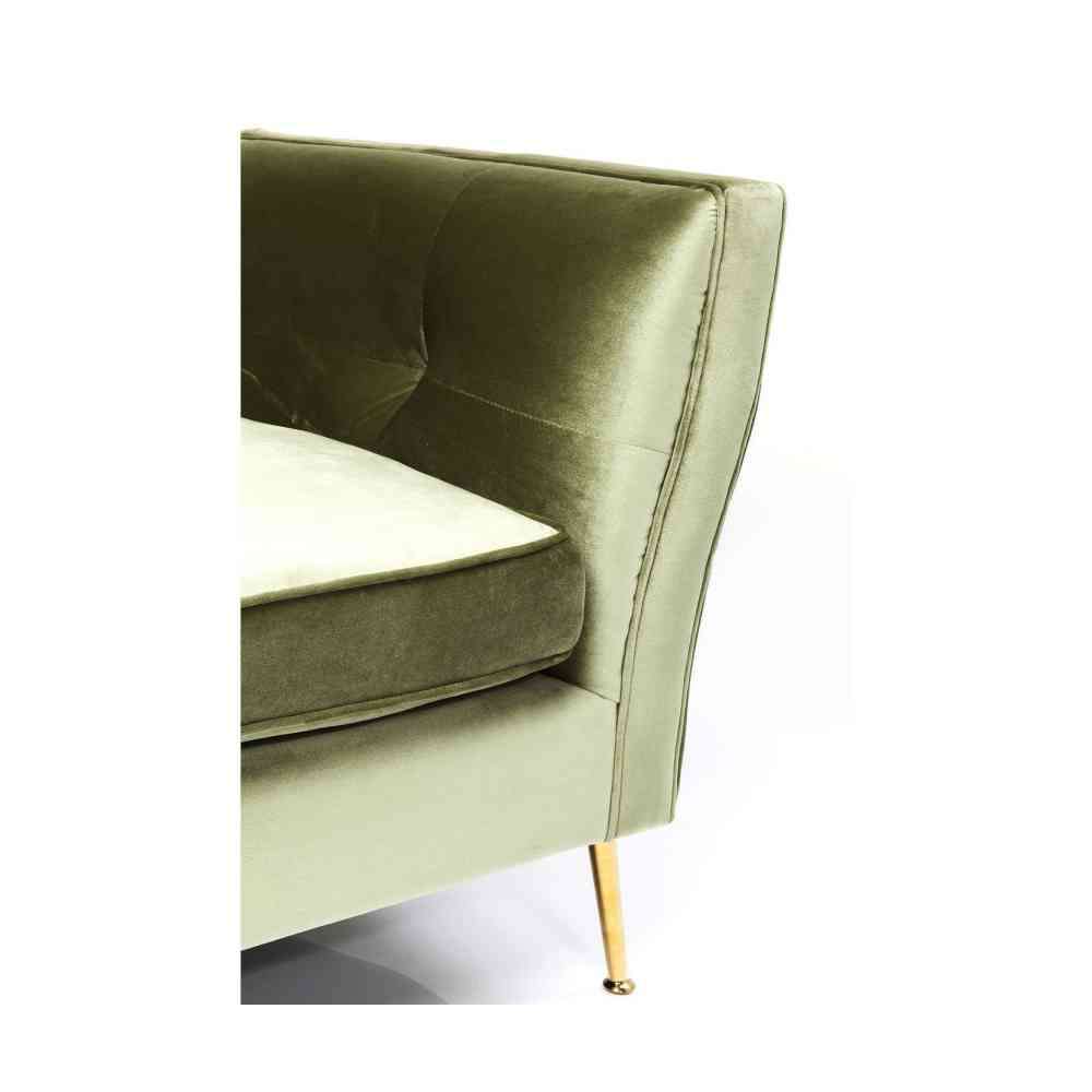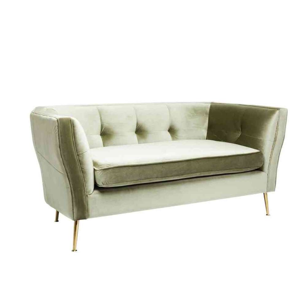 Sofa Rimini mogła poczuć się jak w domu w barze wielkiego hotelu. Ze względu na delikatne proporcje jednak bardzo dobrze sprawdza się również w mniejszych pomieszczeniach. Elegancki: aksamitna osłona w kolorze szałwii i filigranowe nóżki...Odbiorca: :