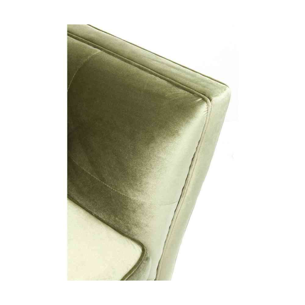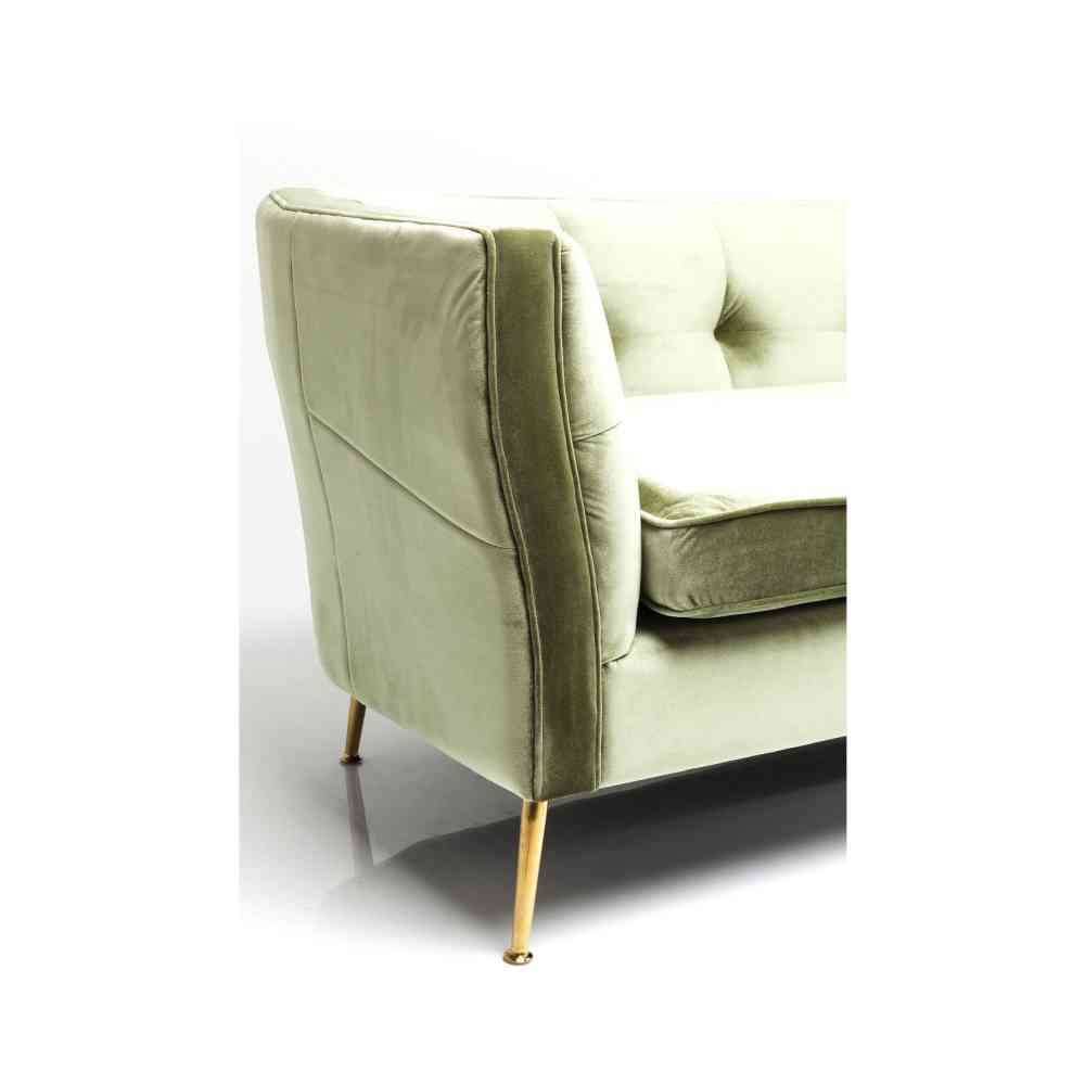 Sofa Rimini mogła poczuć się jak w domu w barze wielkiego hotelu. Ze względu na delikatne proporcje jednak bardzo dobrze sprawdza się również w mniejszych pomieszczeniach. Elegancki: aksamitna osłona w kolorze szałwii i filigranowe nóżki.