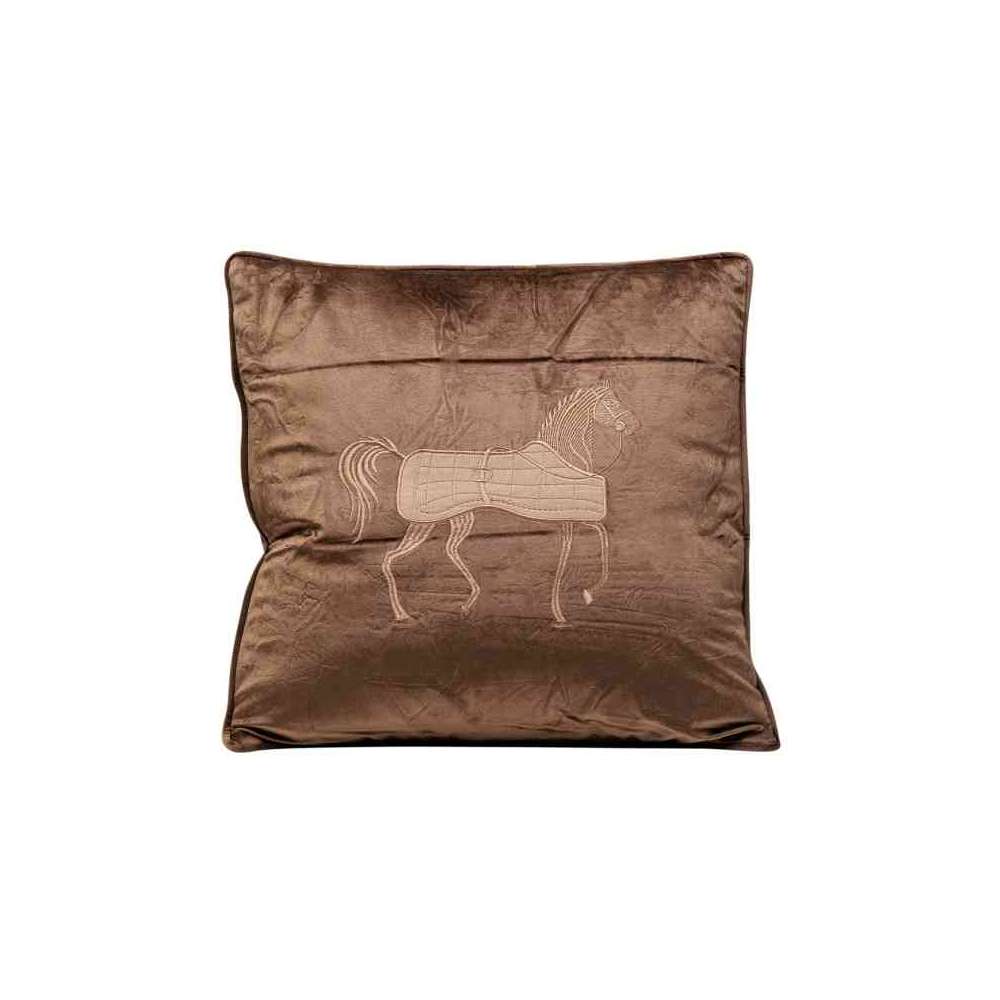 APPLIQUE HORSE firmy KARE Design to kwadratowa poduszka na sofę z zamkiem błyskawicznym i zdejmowanym poliestrowym pokryciem.