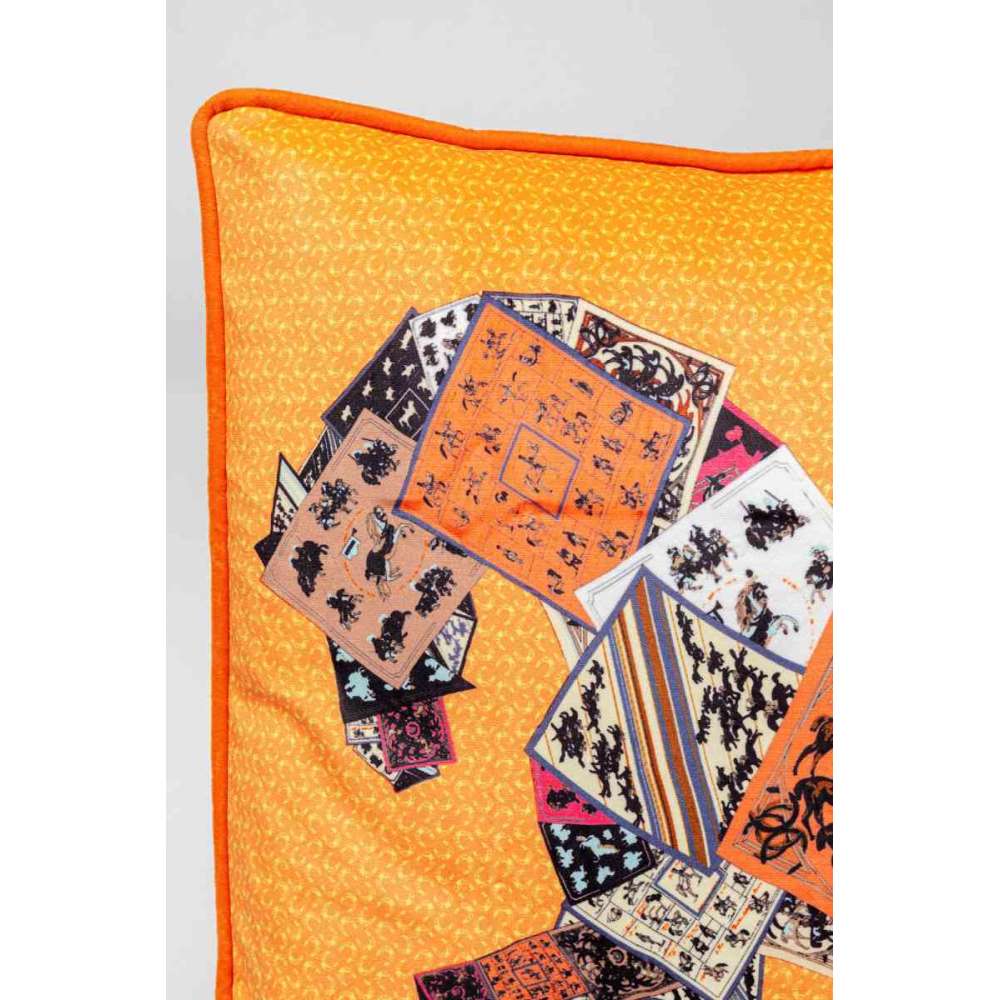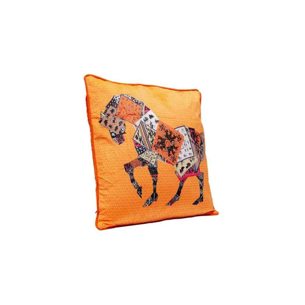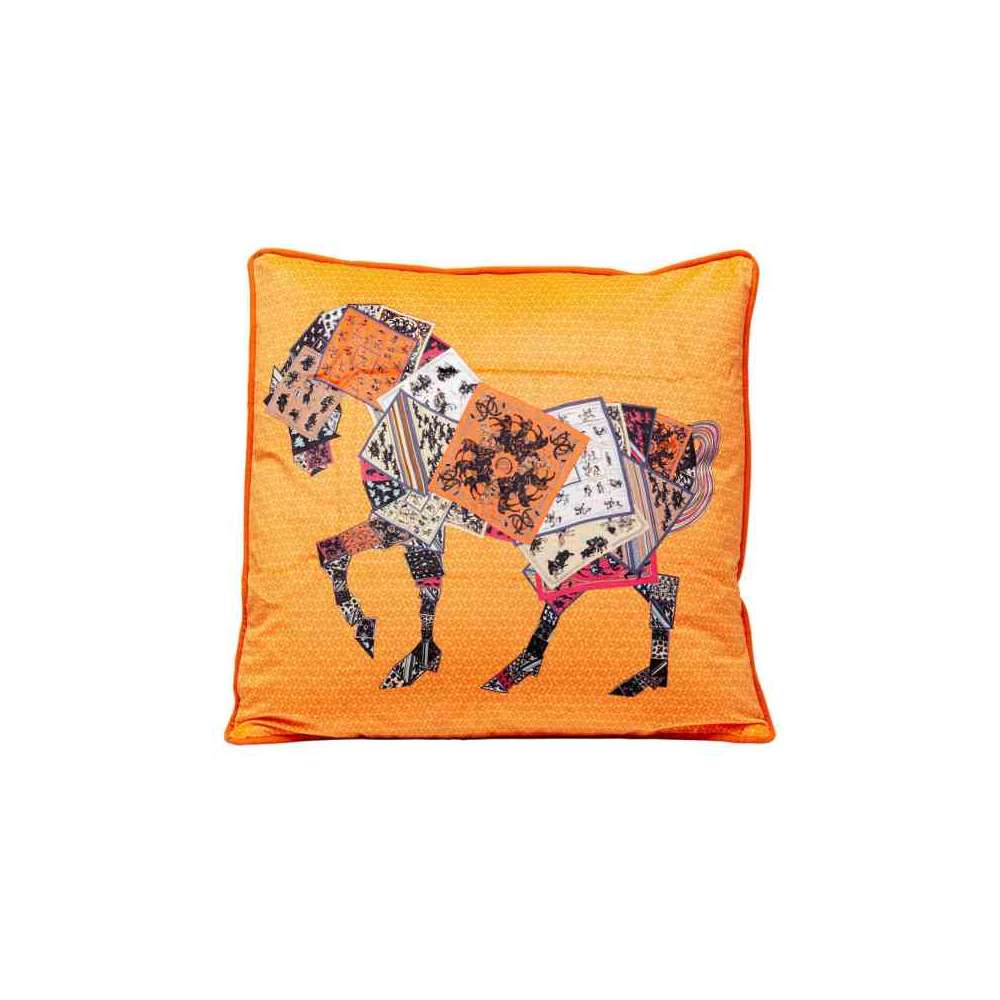 KNIGHT HORSE firmy KARE Design to kwadratowa poduszka na sofę z zamkiem błyskawicznym i zdejmowanym poliestrowym pokryciem.