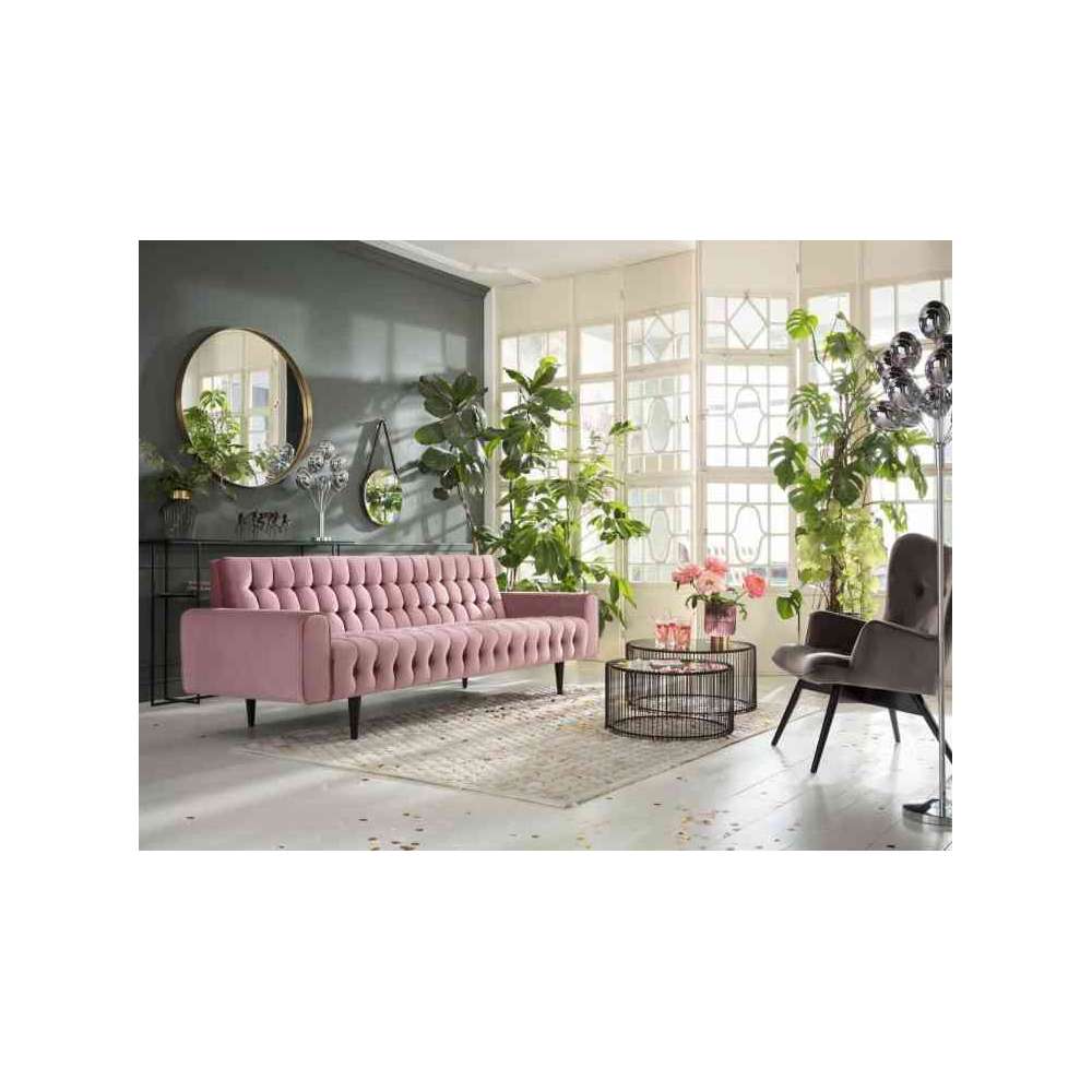 Retro vibes de luxe Nasza sofa Milchbar to wyraz autentycznego stylu, a jednocześnie wygodny mebel o swobodnym uroku retro. Bez względu na to, pod jakim kątem patrzysz na ten mały klejnot, zawsze wygląda niesamowicie szykownie. Ekskluzywny odcień różu oraz stylowe zapięcia na siedzisku i oparciu podkreślają szczególny urok tej trzyosobowej sofy.