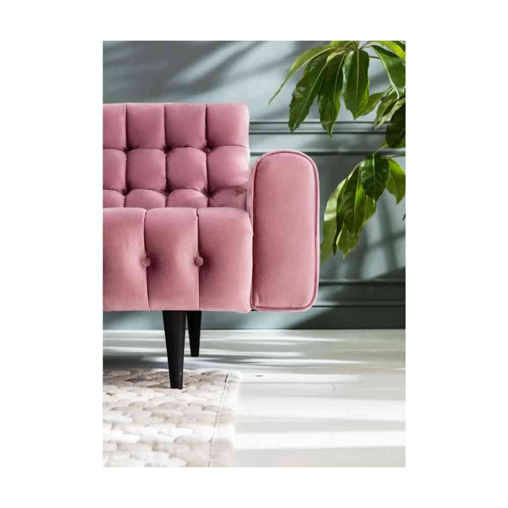 Retro vibes de luxe Nasza sofa Milchbar to wyraz autentycznego stylu, a jednocześnie wygodny mebel o swobodnym uroku retro. Bez względu na to, pod jakim kątem patrzysz na ten mały klejnot, zawsze wygląda niesamowicie szykownie. Ekskluzywny odcień różu oraz stylowe zapięcia na siedzisku i oparciu podkreślają szczególny urok tej trzyosobowej sofy. Zmysłowo miękkie pokrycie z delikatnego aksamit...Zapisz się do naszego newslettera i otrzymuj oferty specjalne i rabaty dla stałych i nowych klientów! Wystarczy, że podasz nam swój adres e-mail i nie przegapisz już żadnej oferty!