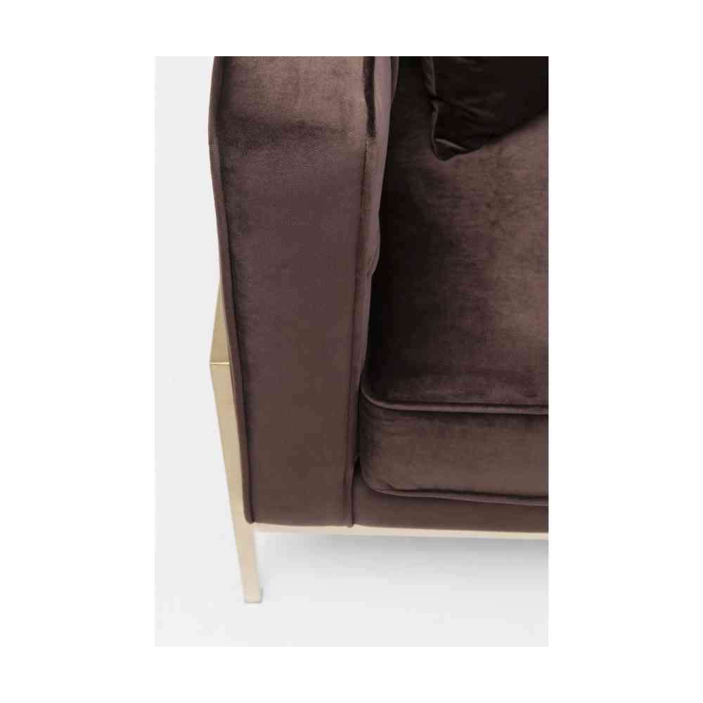 Materiał: stelaż: stal nierdzewna mosiężna, korpus: lite drewno sosnowe naturalne/niepoddane obróbce, pokrycie: 100% poliester, wypełnienie poduszek: 100% poliester, poduszka: 100% poliester, tapicerka: 33 kg/m³ poliuretan, poduszka: 30° C można prać w pralce, z zamkiem błyskawicznym, dostawa powalona, wysokość siedziska 44 cm, test ścieralności: 30000 Martindale, test pillingu: 4 - 5, odporność na światło: 4, elastyczne zawieszenie taśmy.