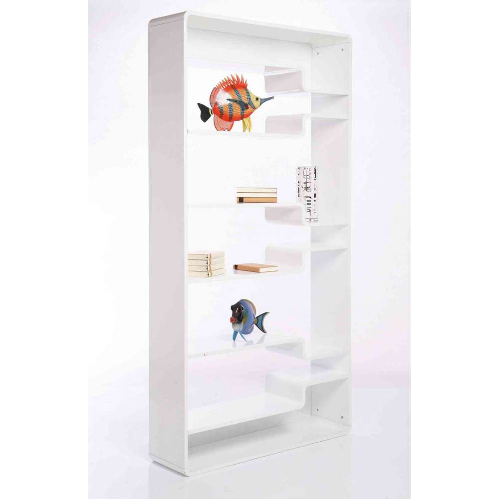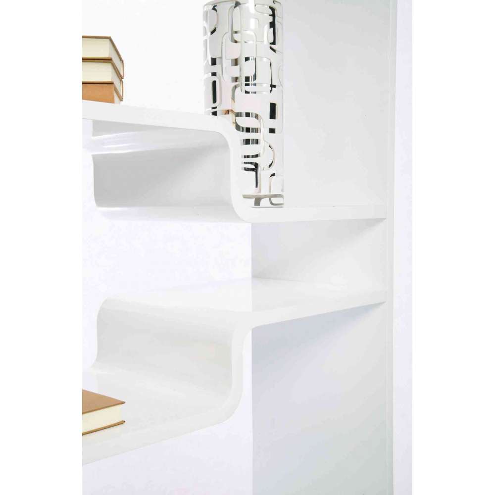 Regały o eleganckich krzywiznach - Stylizacja, która tworzy atmosferę salonu. Dzięki białemu wykończeniu o wysokim połysku regał Soft Shelf charakteryzuje się nietypowymi liniami wzornictwa. Siedem półek nie jest prostych od końca do końca, ale każda obejmuje dwa poziomy. Ta zaskakująca nowa forma przyciągnie każde oko, prezentując piękne przedmioty w jeszcze atrakcyjniejszej oprawie. Dzięki...Odbiorca: :