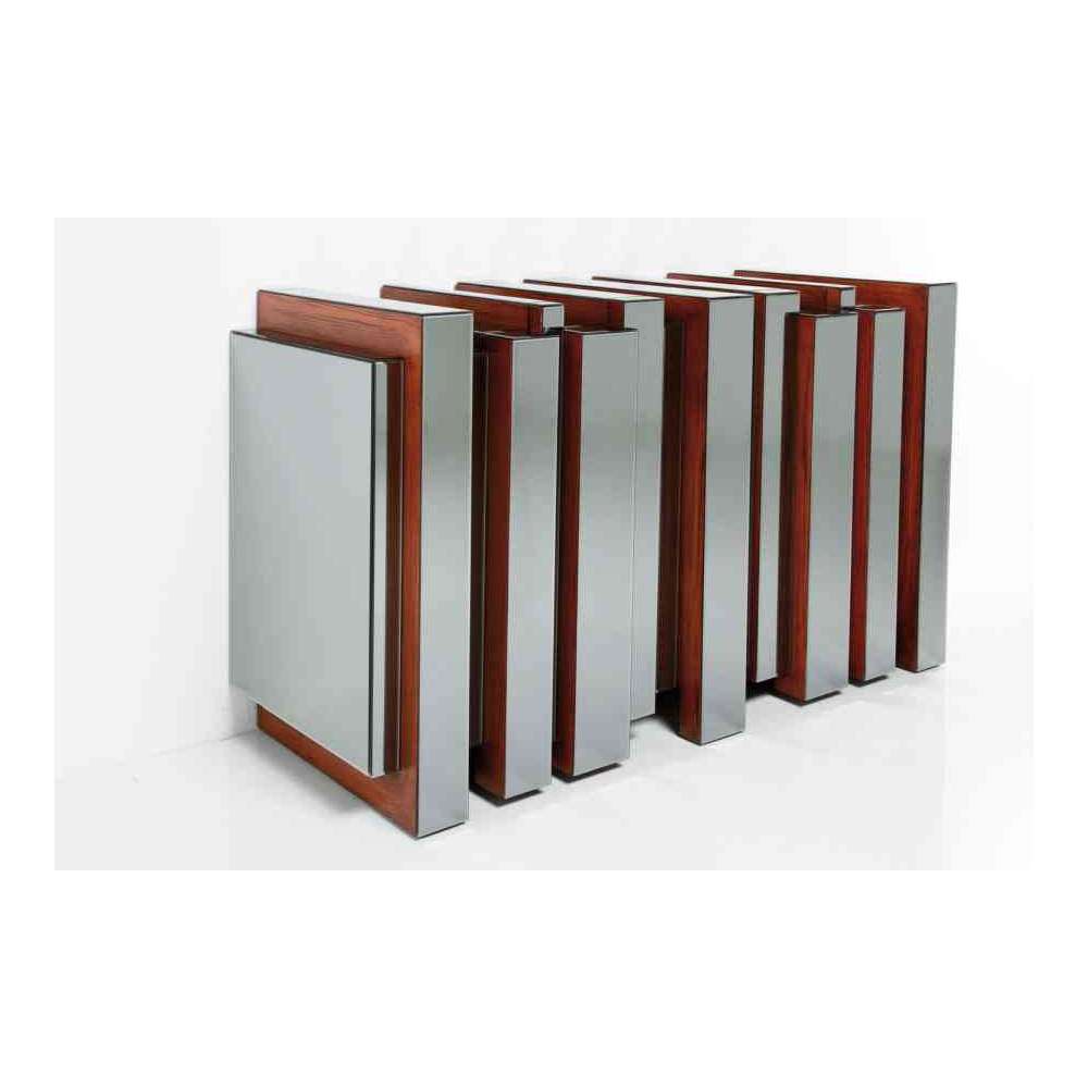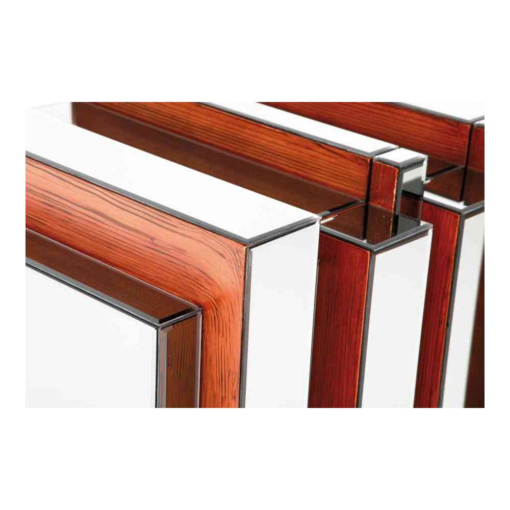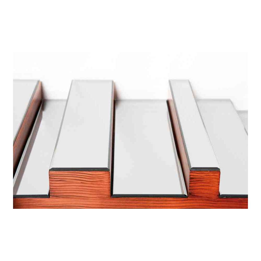 Materiał: MDF 9mm lakierowany (wygląd forniru), szkło lustrzane 4mm barwione na smokey grey