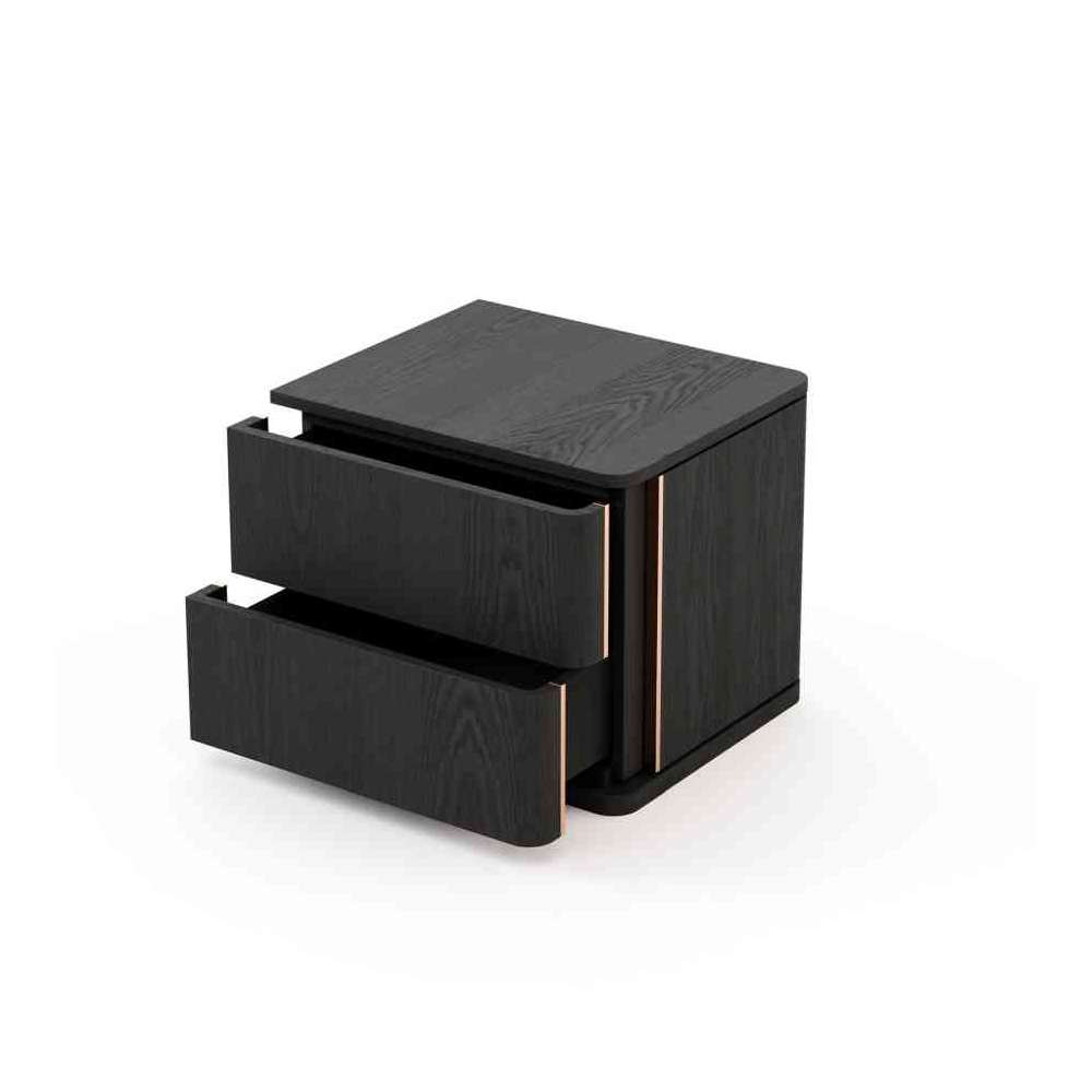 Stolik nocny Hilary jest elegancki i atrakcyjny. Ta minimalistyczna szafka nocna jest idealna do prostych i funkcjonalnych sypialni w stylu skandynawskim. Mebel o pięknych proporcjach z szufladami wykonanymi z ciemnego drewna.