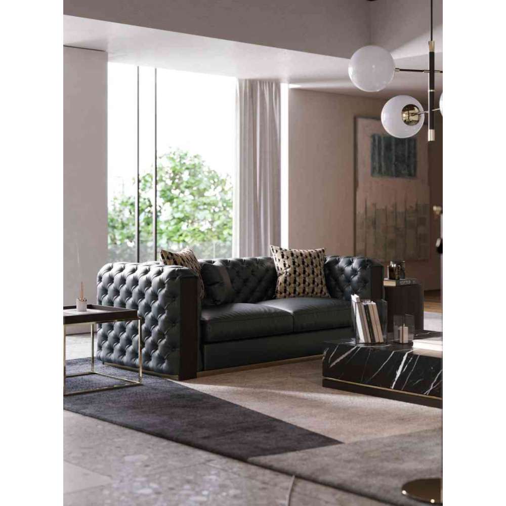 Tufted 3 seater leather sofa