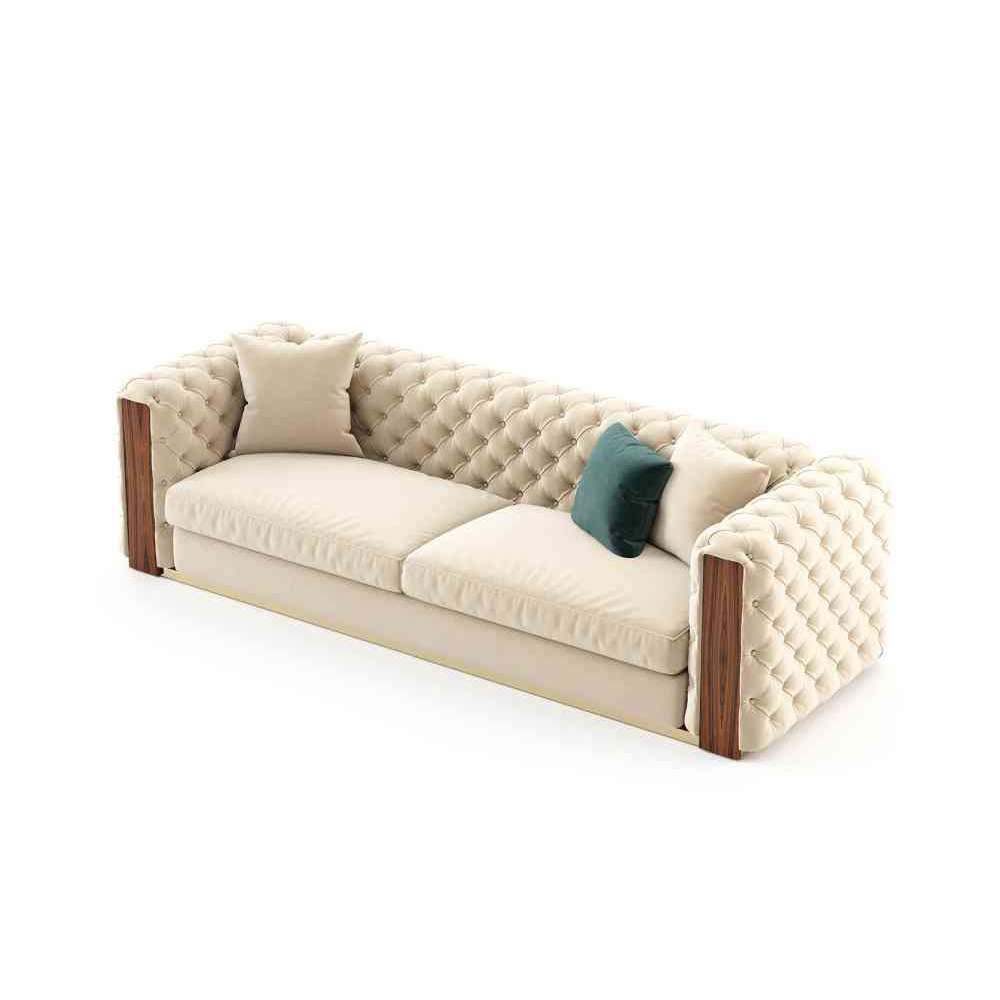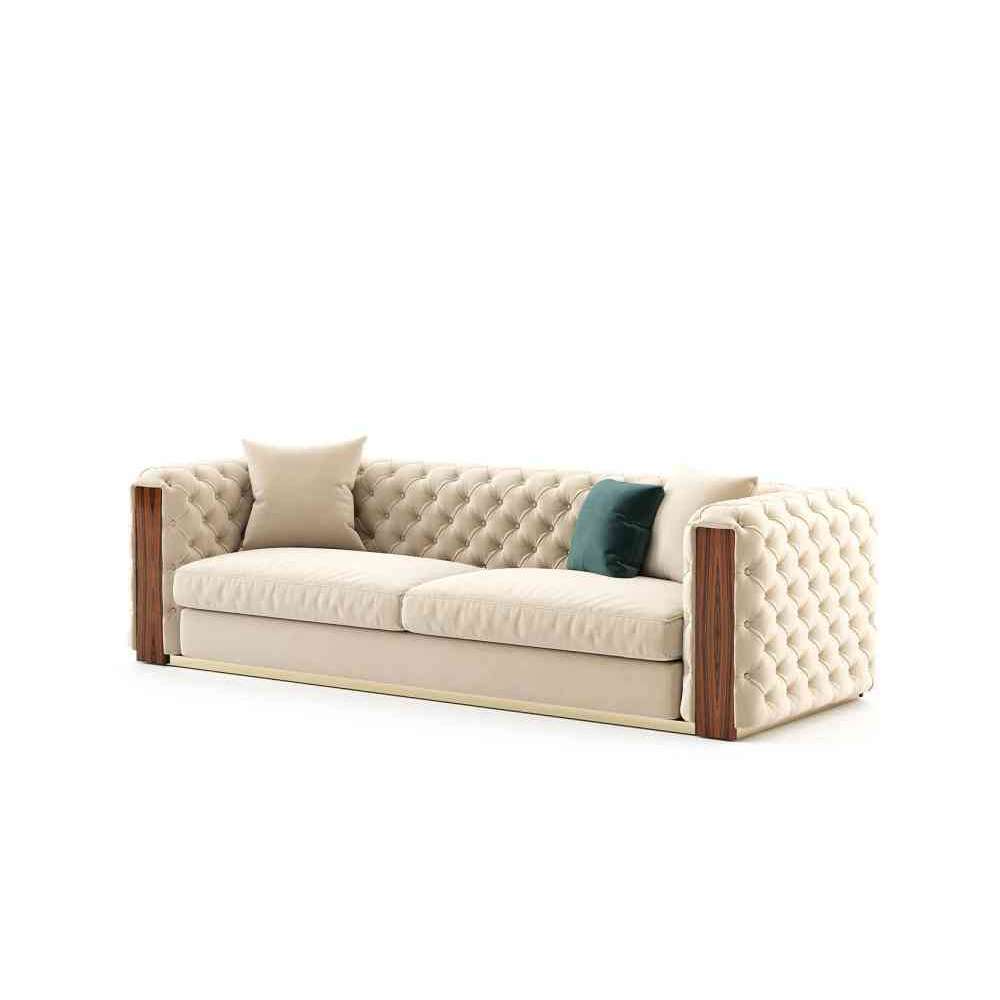 Dzięki wyjątkowemu tyłowi, zaprojektowanemu techniką głębokiego zapinania,Jeansofa jest imponującym elementem do pożądanych salonów. Ta tapicerowana sofa jest idealnym dodatkiem do przytulnych rekolekcji i przyjaznych otwartych przestrzeni. Sofa Jean w pełni wykorzystuje salon, który może służyć jako jadalnia. Jest to uniwersalny element do siedzenia z drewnianymi detalami i metalową podstawą.