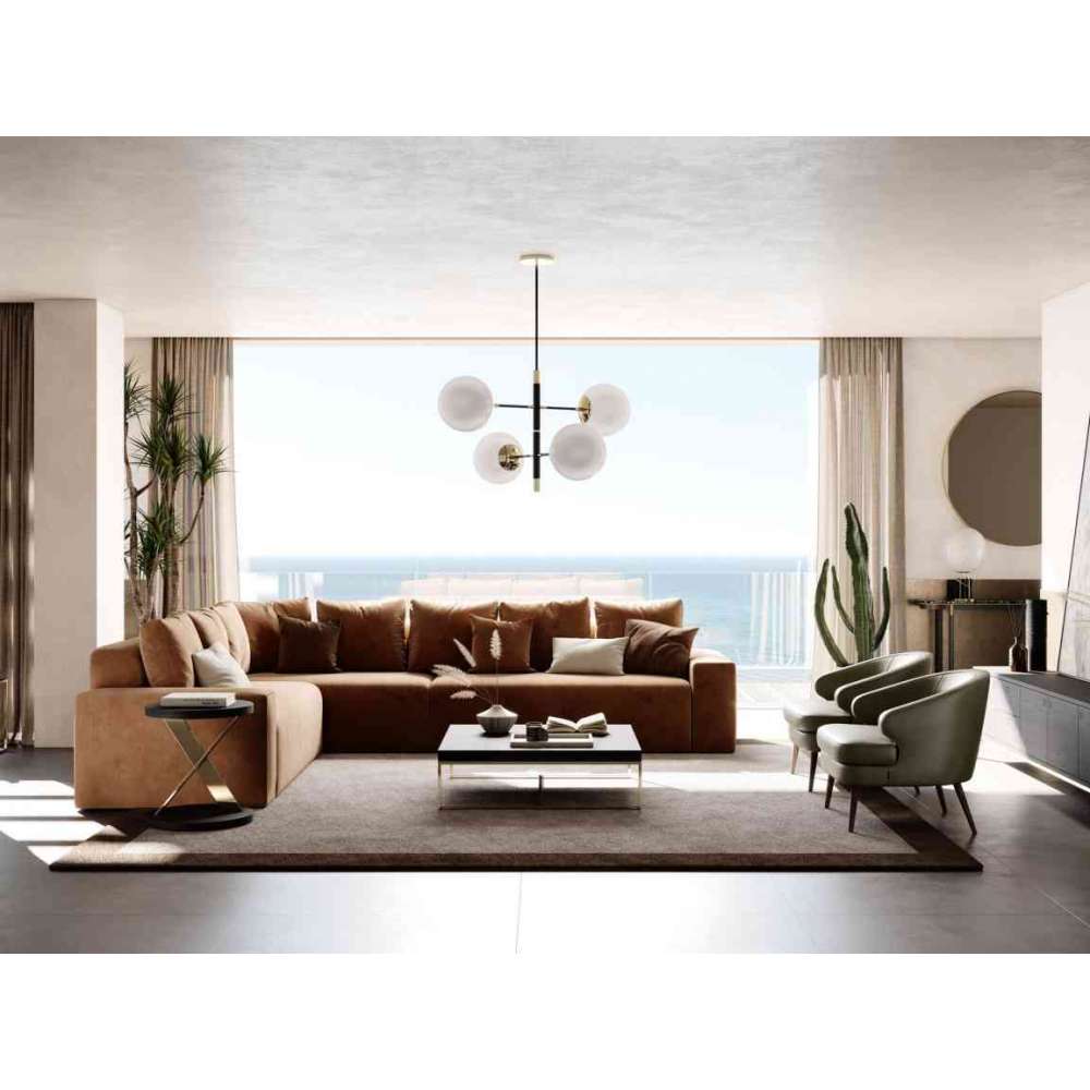 Narożna sofa zapewnia współczesnemu salonowi dodatkową dawkę elegancji i uroku. Idealny do rozciągania się, ten narożnik jest tapicerowany miękką tkaniną, aby zapewnić maksymalny komfort. Czas się zakochać.