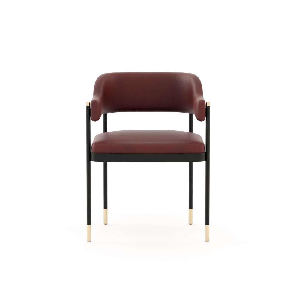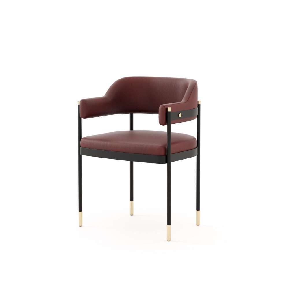 Odkrywając kontrastowe materiały i geometryczne formy, krzesło Dale to oszałamiający element do siedzenia inspirowany stylem vintage z wypukłym oparciem i podłokietnikiem. Forma podąża za funkcjonalnością i wygodą w krześle do jadalni zaprojektowanym do odważnych jadalni lub innych otwartych przestrzeni. Przedstawia konstrukcję z kutego żelaza z metalowymi stopami, osadzonymi w gładkim siedzisku i oparciu z tkaniny.
