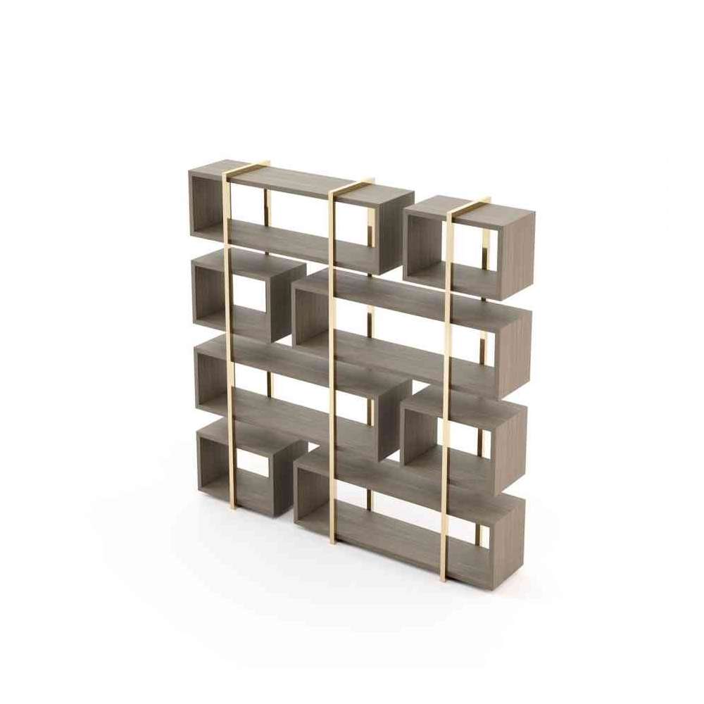 Regał Praga to dzieło sztuki, przedmiot dekoracyjny i mebel. Ten praktyczny i architektoniczny element może być umieszczony przy ścianie lub może służyć jako separator pomieszczeń. Dzięki ciepłym wykończeniom Praga jest wyrazistą półką na książki z połowy wieku dla miłośników glamour.