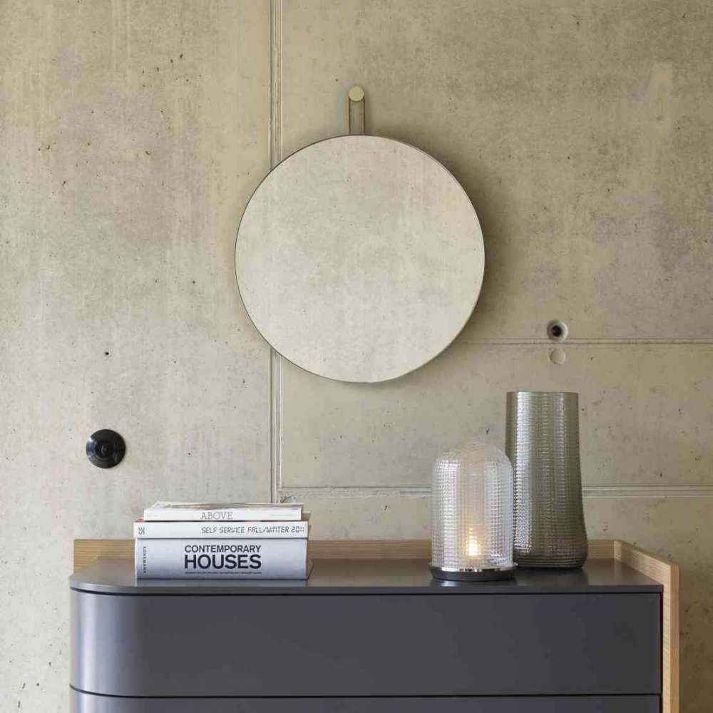 Sperl to okrągłe lustro ścienne ze stalową ramą.