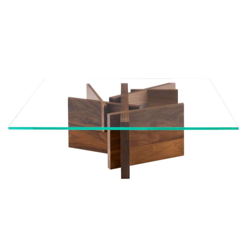 Niski kwadratowy stolik kawowy z drewna i szkła