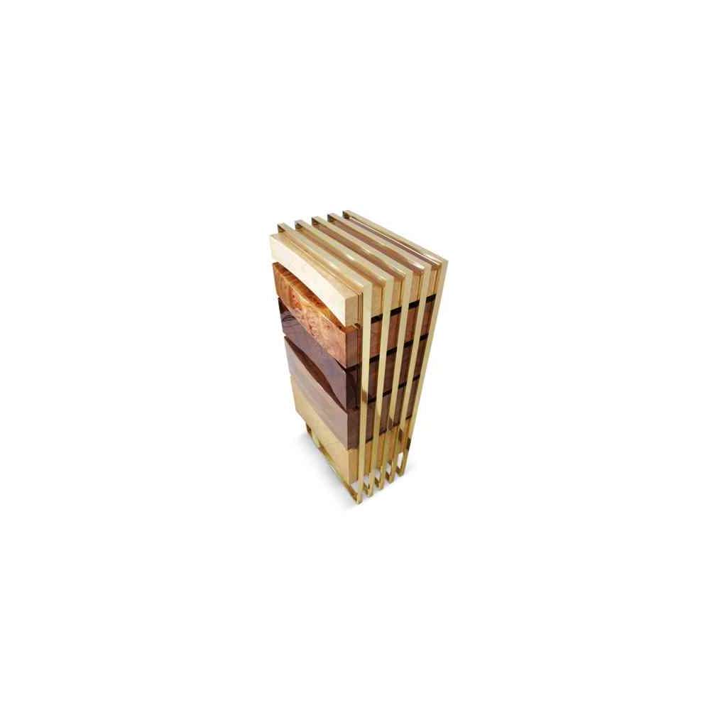 Hollow to publiczne dzieło sztuki, zainstalowane na terenie Uniwersytetu w Bristolu przez architektów Zeller&Moyne i artystkę Katie Paterson. Łączy w sobie różne rodzaje drewna, a także grafikę, która składa się z próbek z ponad 10 000 gatunków drzew. Zainspirowany tą wspaniałą konstrukcją, nasz zespół projektantów stworzył coś wyjątkowego i wymyślił pustą nowoczesną komodę. Komoda wydrążona zawiera różne rodzaje drewna, połączone z polerowaną strukturą mosiądzu, tworząc piękny krajobraz pasujący do każdego współczesnego wystroju domu.