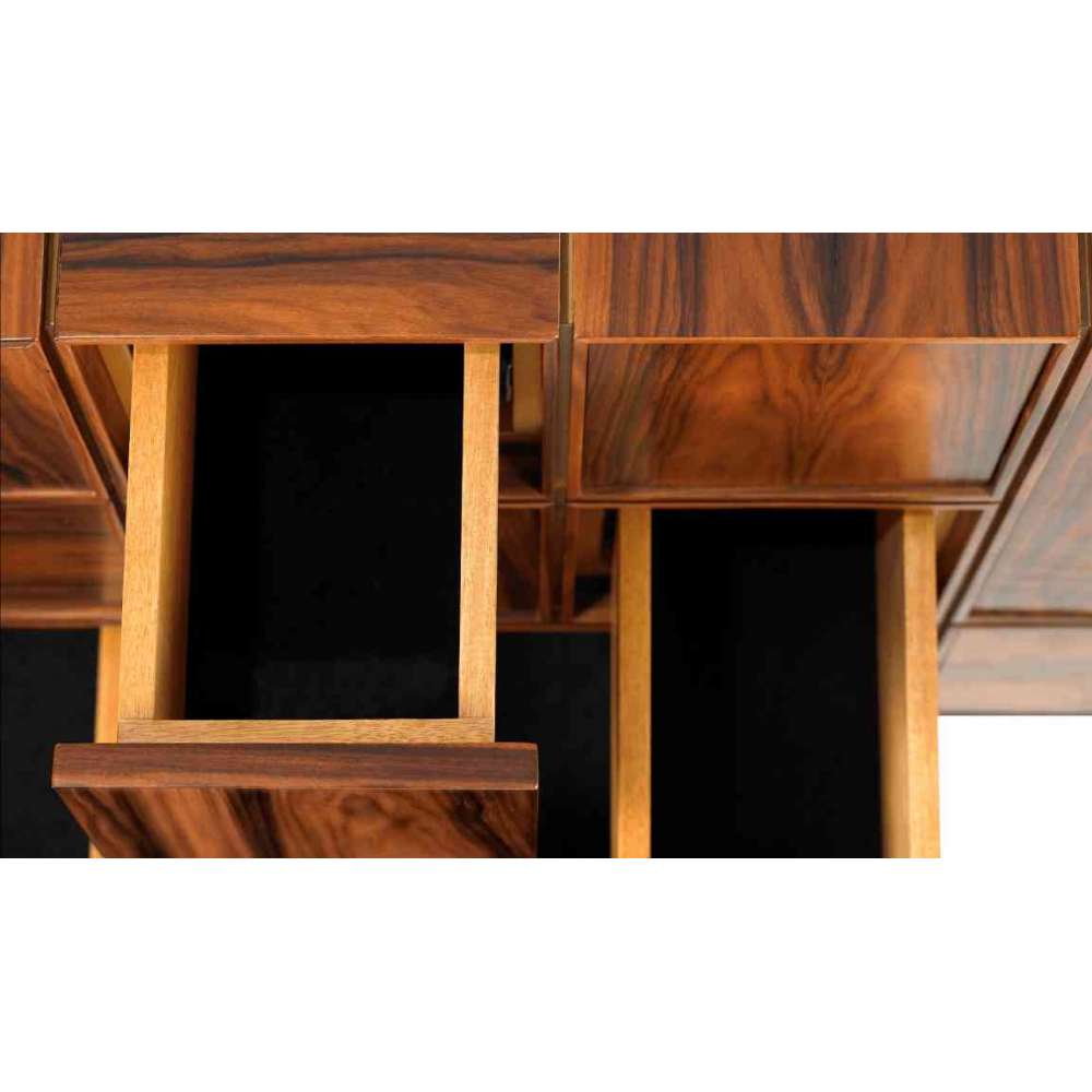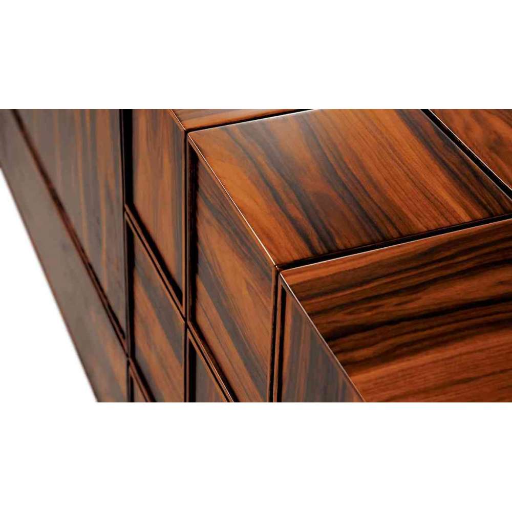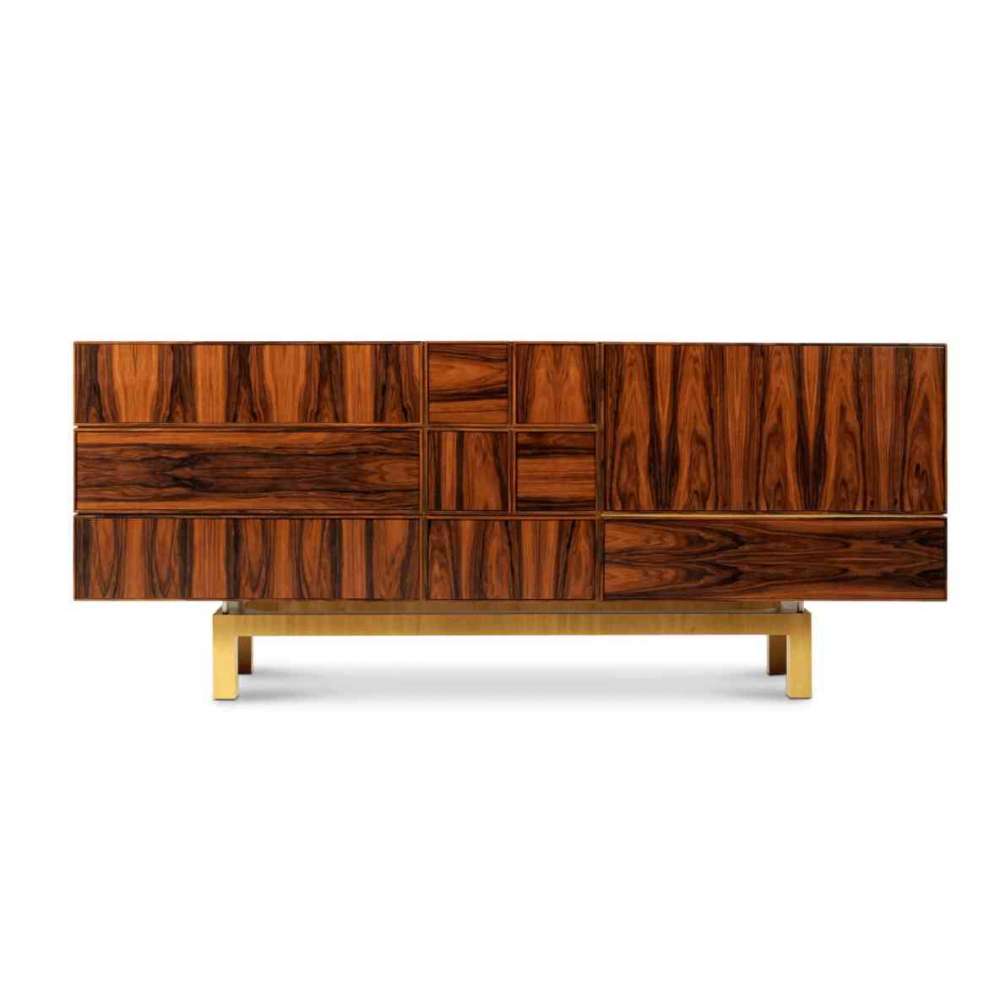 Mies van der Rohe powiedział kiedyś: „Bóg tkwi w szczegółach”. Dzięki wysokiej precyzji i dopracowanym detalom współczesny kredens Moduler uwodzi i ekscytuje. W tej aluzji do pracy architekta, projekt nowoczesnego kredensu prowadzi nas do niezwykłej pracy wykonanej już przez charakterystycznego i niepowtarzalnego van der Rohe. Nowoczesny kredens Moduler został zaprojektowany z geometrycznymi liniami i wykonany z drewna egzotycznego. Jego wnętrze z satynowego drewna, miękkiego i jasnego drewna, kontrastuje ze strukturą zewnętrzną.
