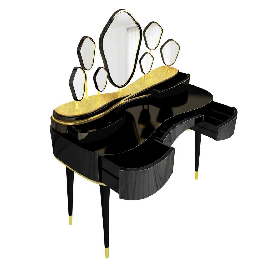Toaletka Amélie jest wyrazem mistycyzmu i magii. Zainspirowany kolorami Pantone z 2017 roku, prezentuje lakier ozdobiony mosiężną strukturą i złotymi akcentami liści. Ta chabi-chic toaletka to arcydzieło, które upamiętnia ostatnią królową Portugalii. Dona Maria Amélia była księżniczką Cesarstwa Brazylii i członkiem brazylijskiego oddziału Domu Braganza. Jej siedem luster odzwierciedla siedem sekretów wiecznego piękna królowej. Toaletka Amelie jest uosobieniem nowoczesnej koncepcji przepychu i ekstrawagancji i doskonale ujawnia różnorodność ukrytych piękności i odmiennych postaw z pracowni Malabar. Toaletka Amelia jest częścią kolekcji Heritage.