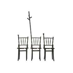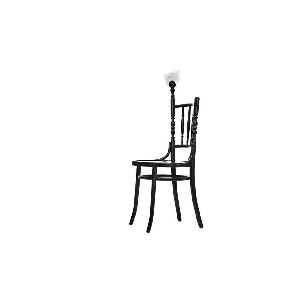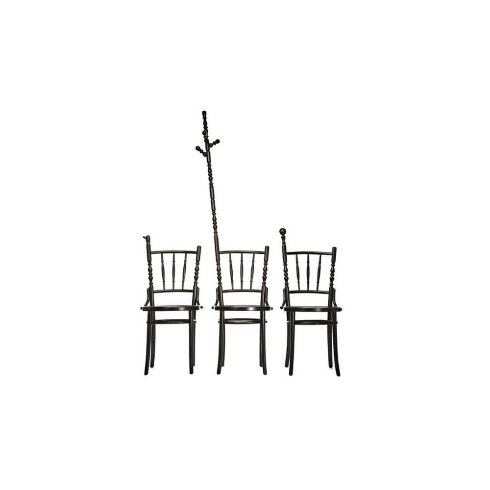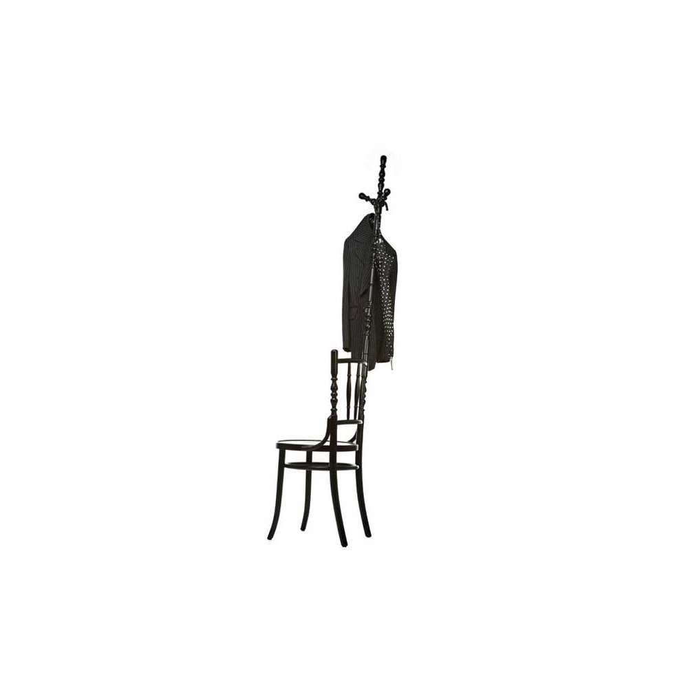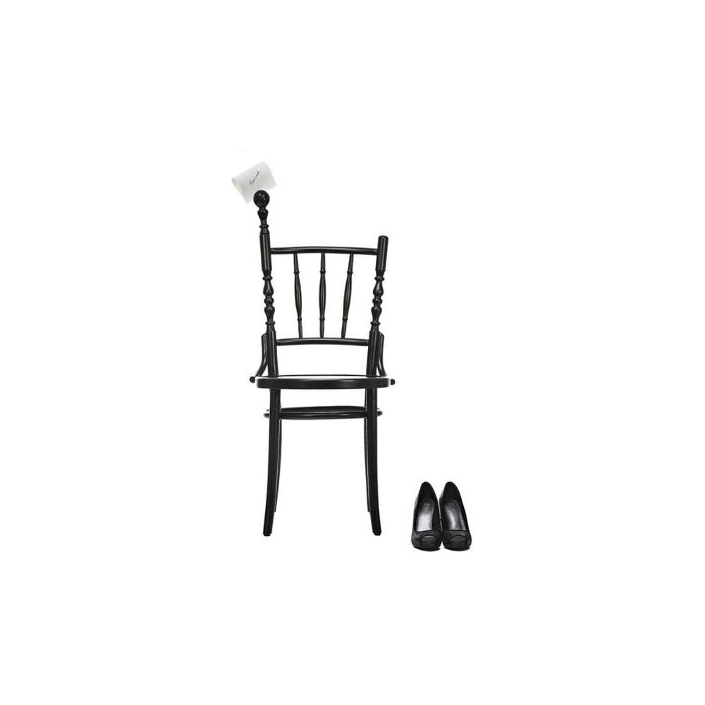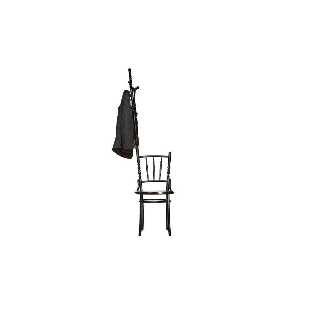 „Krzesło 'przedłużone' jest tłumaczeniem tego, jak jest używane krzesło. Vroonland czerpie z manier i zwyczajów związanych z tym, jak używamy krzesła, przekształcając je w siedzenie na wieszak. rzeczywisty kontakt fizyczny łączy się w jeden projekt: krzesło”. Różnorodność 3 rozszerzeń, z których każde ma inną funkcję. Wieszak, wieszak na torebkę i uchwyt na karty (przedłużenie wieszaka ma dodatkową przeciwwagę w siedzisku, aby zapobiec niestabilności) Materiał: lity buk Kolor: czarny matowy lakier. Fotograf Nicole Marnati Prawa autorskie Moooi bv