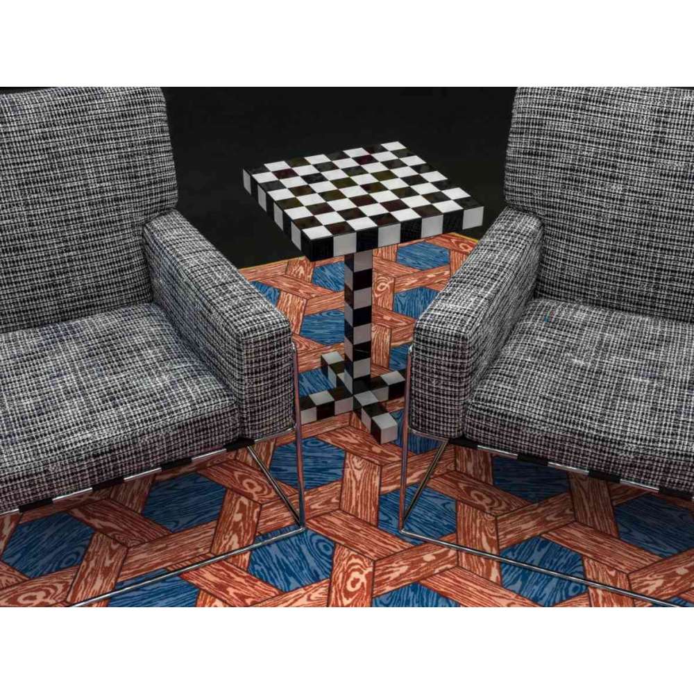 Dekoracja na stoliku bocznym może służyć do grania w gry. Stół do rozrywki, rywalizacji i sprytu. Materiał: Różne rodzaje drewna, wewnętrzna rama stalowa, lakier o wysokim połysku. Kolory: biały, czarny. Stół szachowy jest częścią kolekcji stołów moooi Fotograf Maarten van Houten Copyright Moooi bv...Odbiorca: :