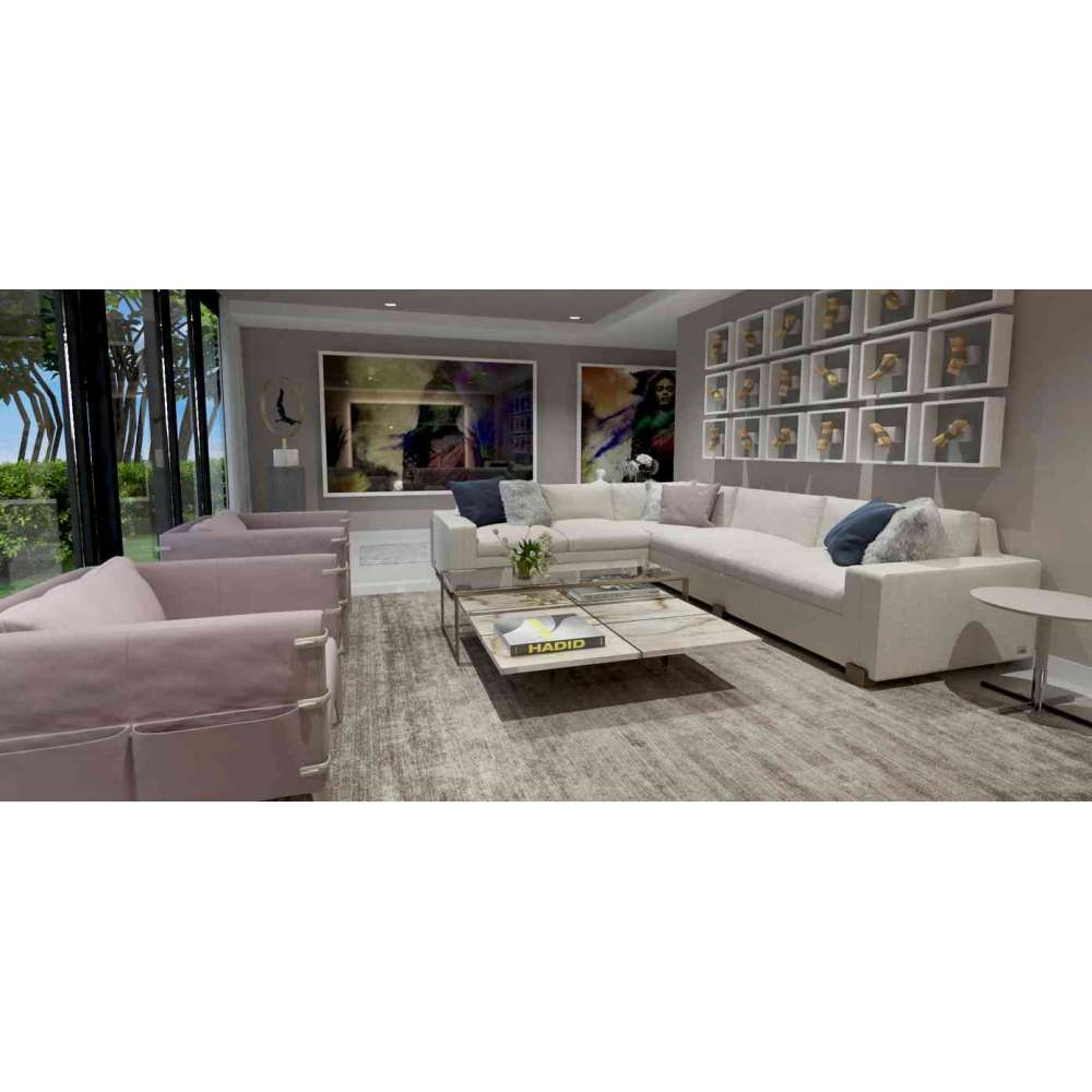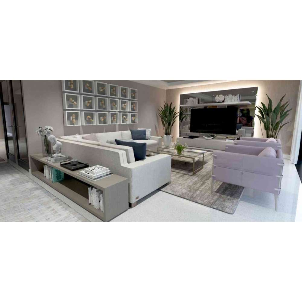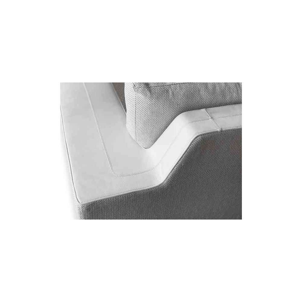Gonna to sofa, która bawi się połączeniem skóry i tkaniny. Miękka wyściółka zapewnia wygodę i praktyczność, a zastosowanie delikatnej skóry na podłokietnikach zapewnia łatwą do czyszczenia powierzchnię. Sofa wyposażona jest w zdejmowany podnóżek. Ręcznie robione we Włoszech, dostępne również w nabuku lub aksamicie oraz w innych rozmiarach na zamówienie.