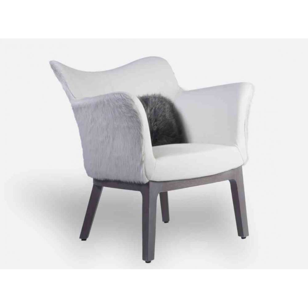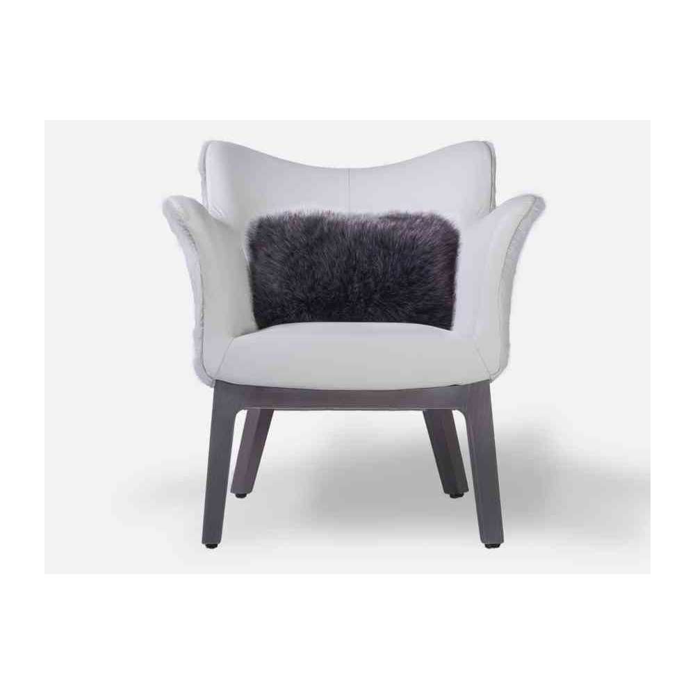 Jenn to fotel z lekko pochylonym oparciem, aby uzyskać zrelaksowaną i ergonomiczną pozycję siedzącą. Konstrukcja wykonana jest z drewna, a siedzisko ze skóry, dostępnej również w tkaninie, aksamicie lub nabuku. Fotel jest ręcznie robiony we Włoszech i na zamówienie dostępny w innych rozmiarach.