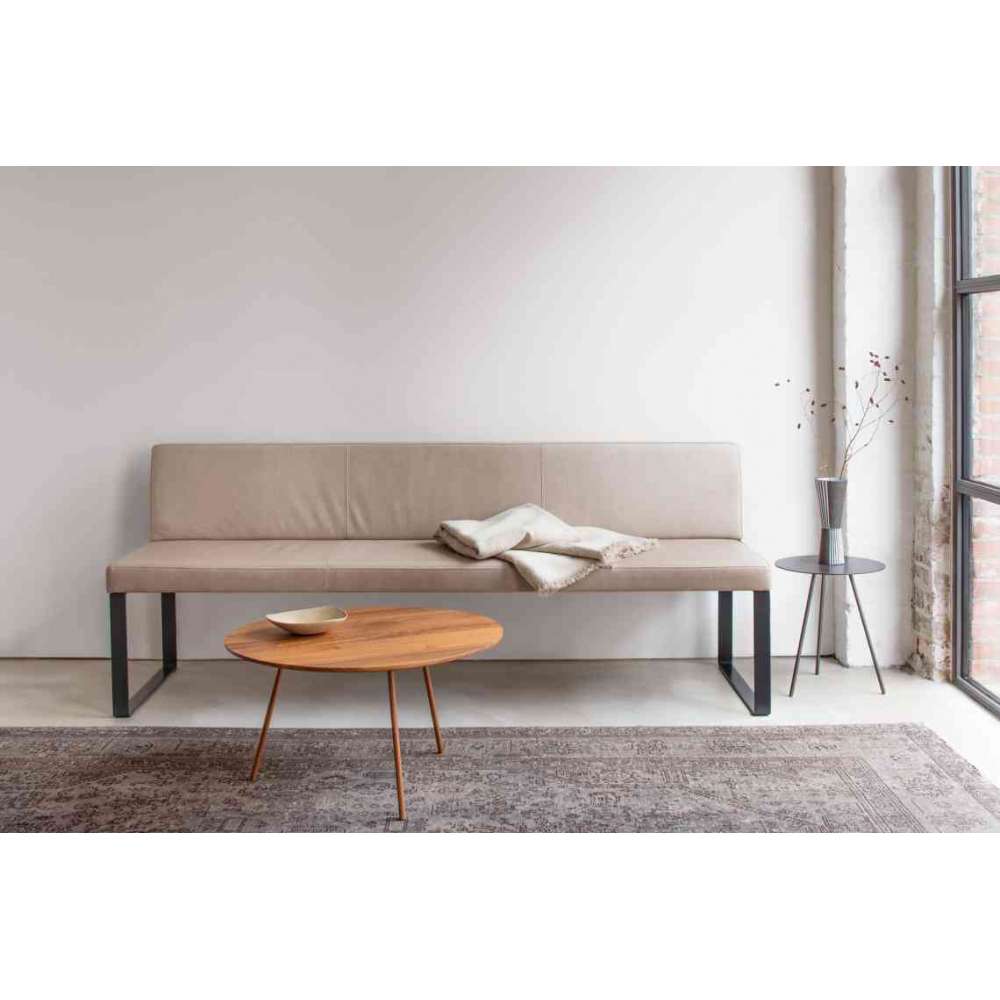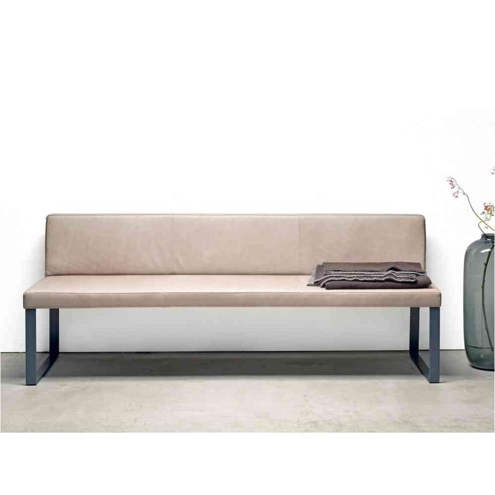 Tapicerowana ławka ze sprężynami wewnętrznymi z pokryciem z tkaniny lub skóry. Dostępne w dwóch różnych rodzajach oparć. Opcjonalnie z podłokietnikiem, również w dwóch rodzajach. Do wyboru nogi drewniane (dąb lub orzech) lub chromowane polerowane płozy. Dostępna również ławka narożna.