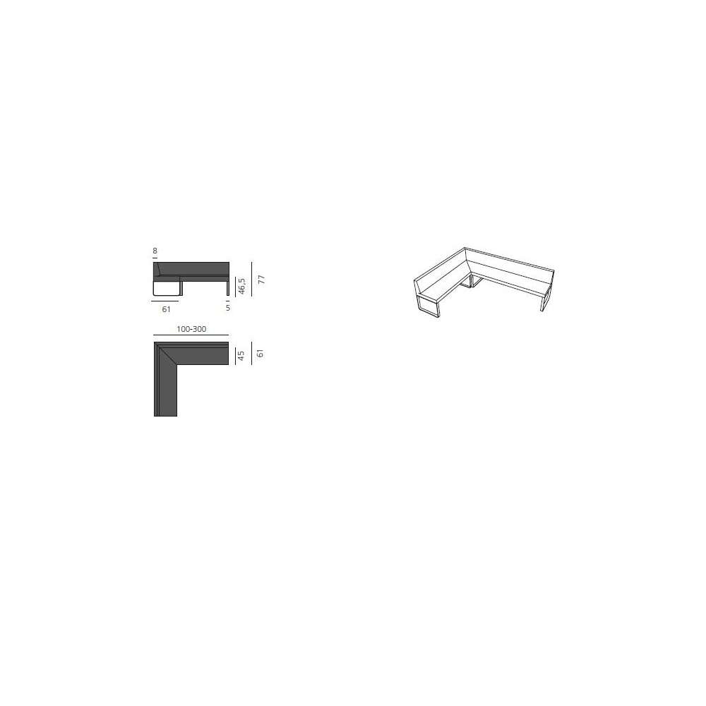 Tapicerowana ławka ze sprężynami wewnętrznymi z pokryciem z tkaniny lub skóry. Dostępne w dwóch różnych rodzajach oparć. Opcjonalnie z podłokietnikiem, również w dwóch rodzajach. Do wyboru nogi drewniane (dąb lub orzech) lub chromowane polerowane płozy. Dostępna również ławka narożna.