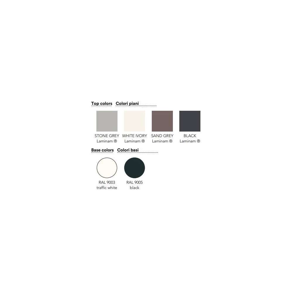 Bllomy to stolik kawowy z podstawą z czarnej lub białej lakierowanej stali; kolumna stalowa z białą lub czarną tuleją z tworzywa ABS; blaty są z Laminam®. Wierzchołki nie są wymienne.