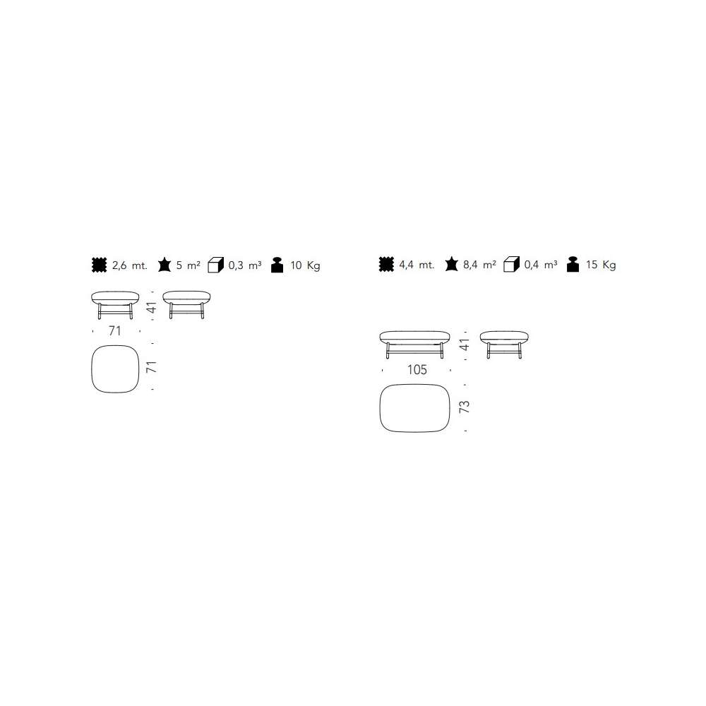 Ottoman to podnóżek z wtryskiwaną ognioodporną pianką poliuretanową na wewnętrznej stalowej ramie. Poduszki siedziska i oparcia są wypełnione włóknem poliestrowym na ognioodpornej piance poliuretanowej i wiórach z pianki memory. Nogi stalowe, lakierowane proszkowo. Pokrywy z kolekcji Ottoman nie są zdejmowane.