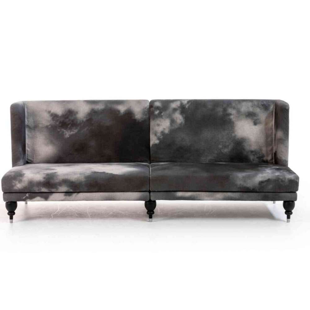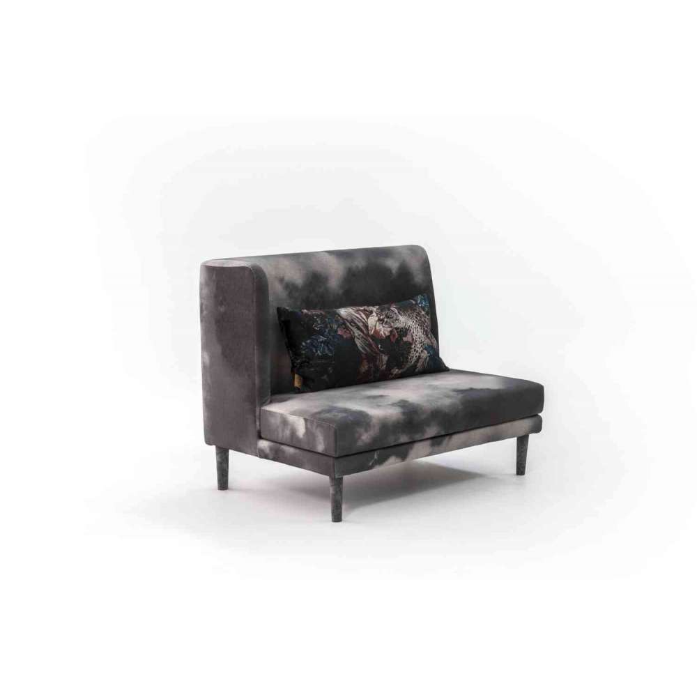 Sofa Gimme More staje się rozkładaną kanapą — idealnym rozwiązaniem do siedzenia kontraktowego do wypełniania większych przestrzeni. Klasyczny kształt w stylu vintage, z wysokim oparciem i owiniętymi skórą nóżkami z toczonego lakierowanego drewna, można dostosować za pomocą tkanin w luksusowych bryłach lub ekscentrycznych nadrukach. Siedzisko w stylu ławki składa się z dwóch prostych elementów i jednego kątowego, przeznaczonego do owijania narożników.