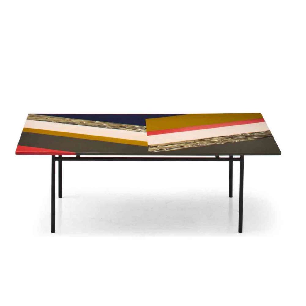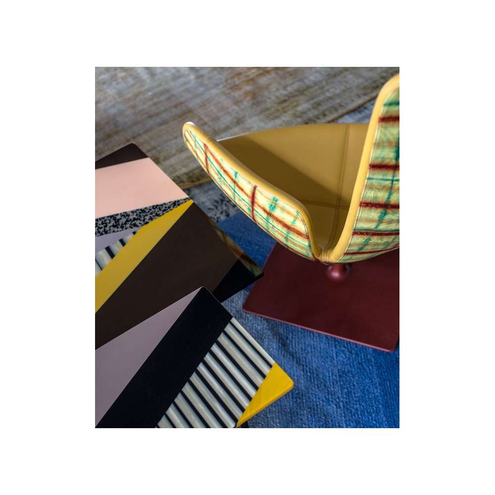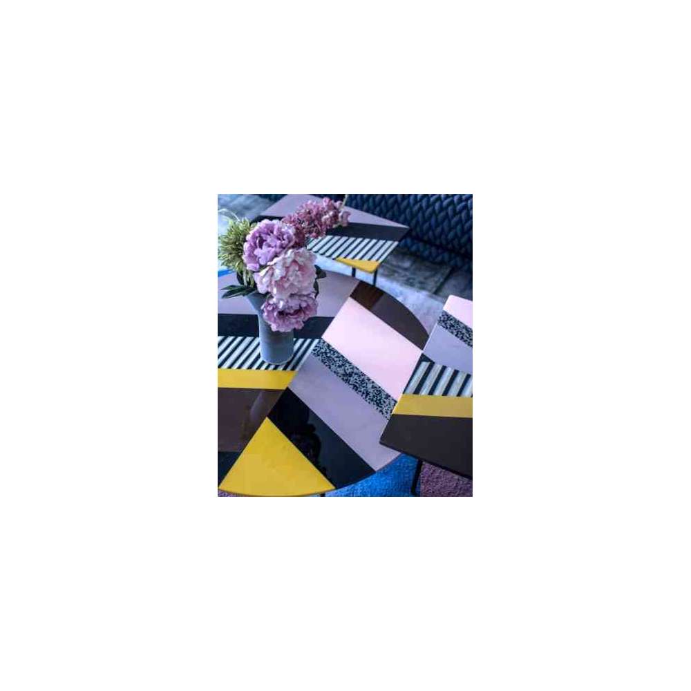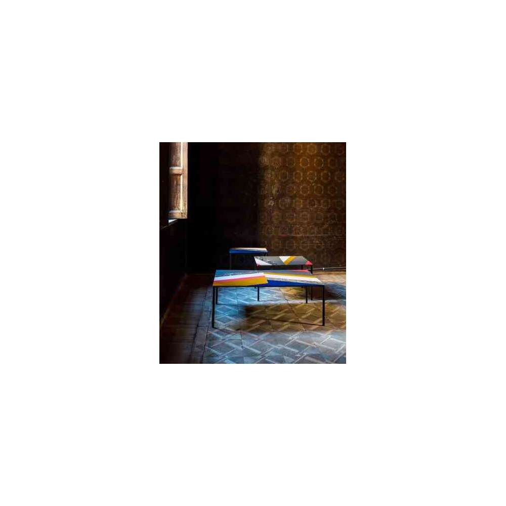 Fishbone to niski stolik z blatami z ręcznie zdobionego metakrylanu Sintetica®. Przycięte i ułożone zgodnie z rysunkami przedstawionymi na następnej stronie. Podstawa to rurka stalowa z matowym czarnym lakierem proszkowym; czarne podkładki polipropylenowe. UWAGI: - 3 wersje i różne wzory są wynikiem 3 różnych kombinacji kolorystycznych w 7 różnych rozmiarach - mogą występować różnice we wzora...Odbiorca: :