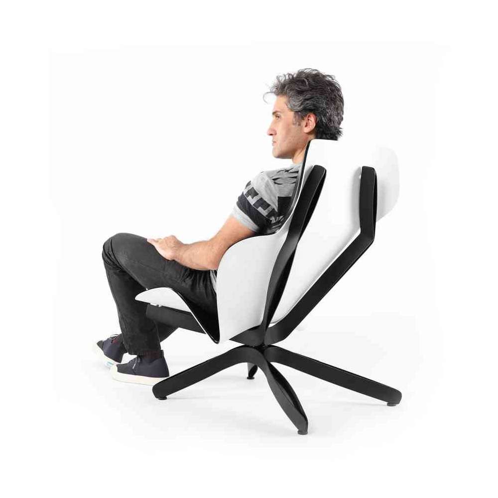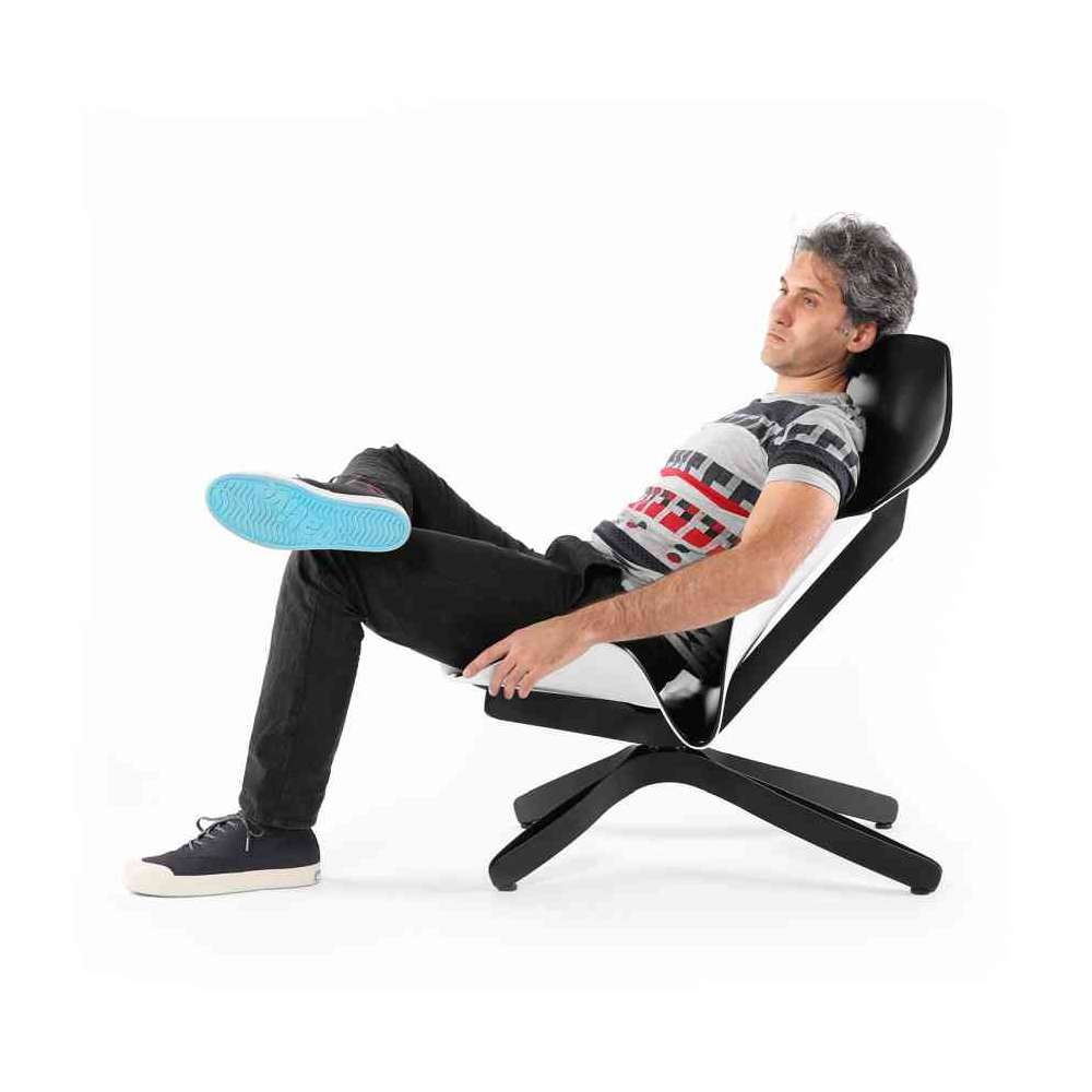 Wykorzystując zasady bioniki, projektanci stworzyli wyrazisty mebel, w którym plastikowa forma siedziska przypomina płatek orchidei, a stalowa podstawa jest jak sama modliszka. Lekkie wizualnie krzesło OM ma wszystkie właściwości ergonomiczne potrzebne do relaksu, a obrót o 360 stopni pozwala nogom zająć wygodną pozycję.